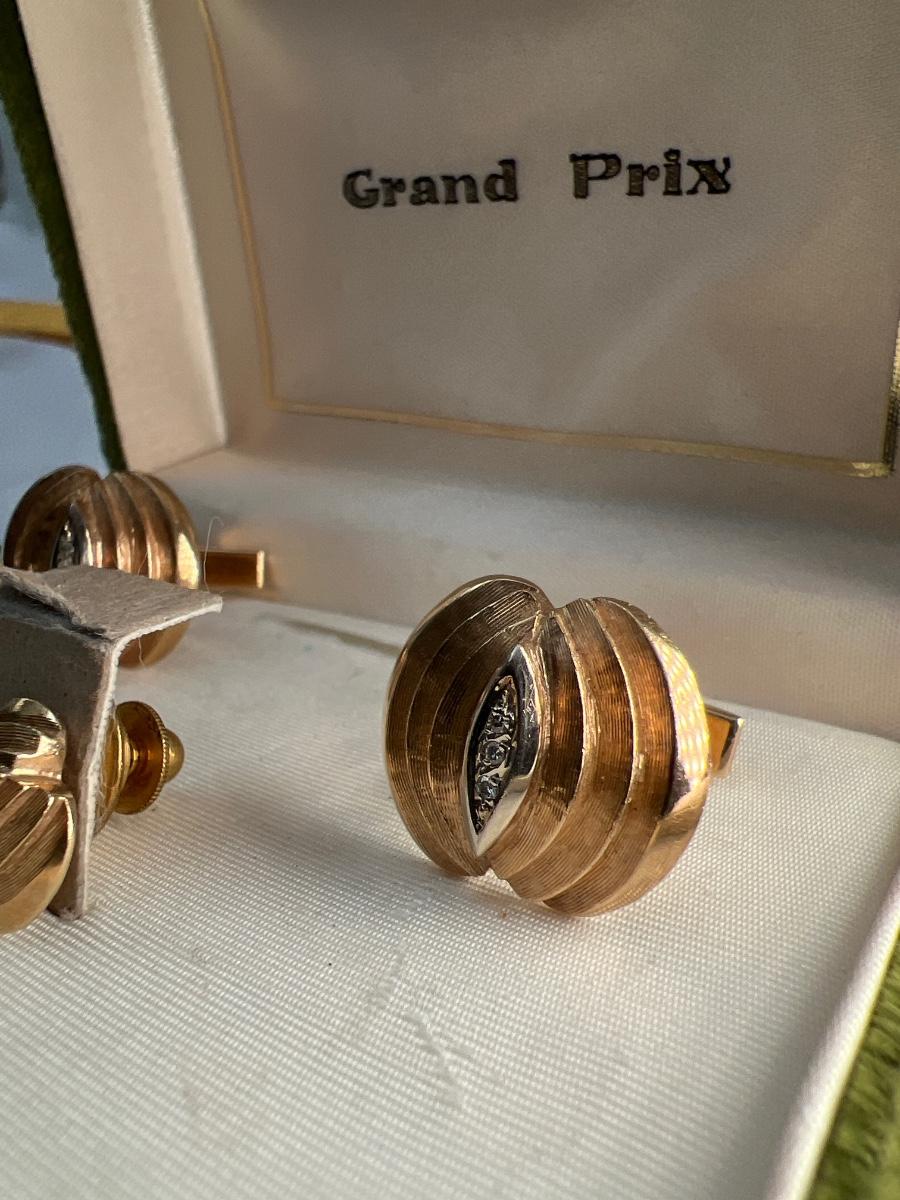 Grand Prix 14K With Diamonds - Gold Cufflink & Tie Tack Set (PB2-RG)