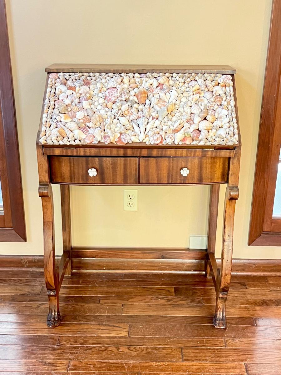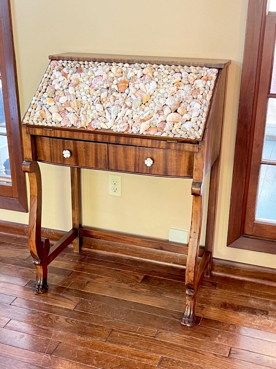 GRAND RAPIDS FURNITURE ~ Vtg. Claw Foot Solid Wood Secretary ~ With Seashell Design