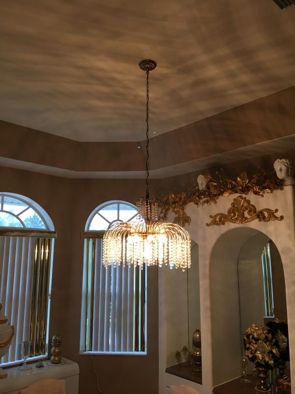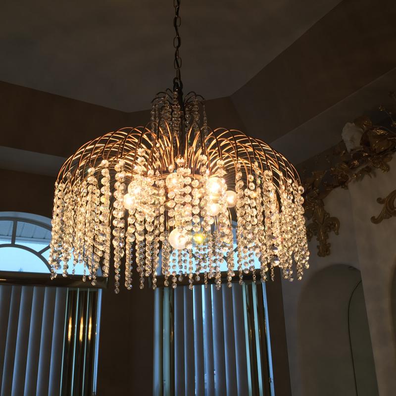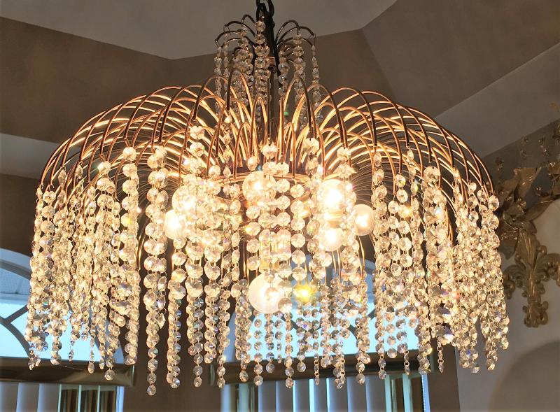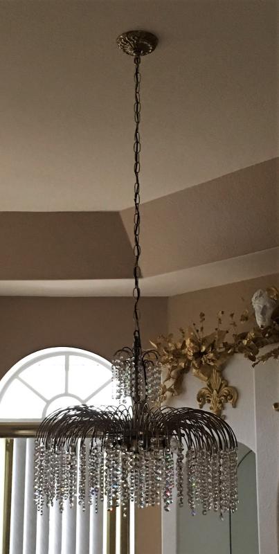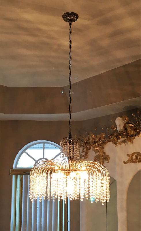 This brass and crystal chandelier is a nice Hollywood Regency piece and looks fantastic in a dining area and would also be a focal piece no matter where you put it in your home.