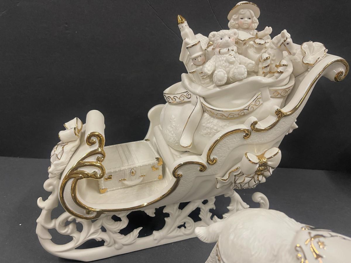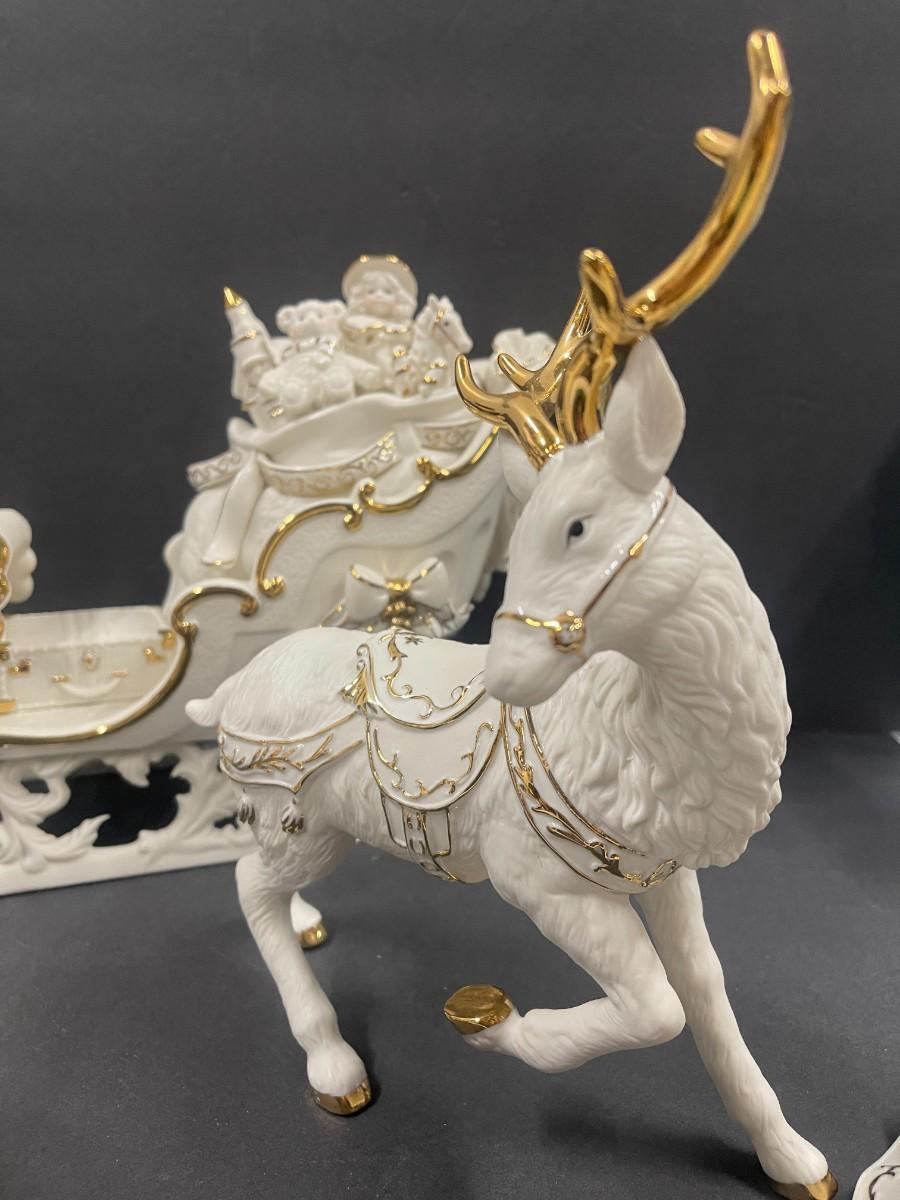 Grandeur Noel 2001 Collector's Edition Porcelain Santa and Sleigh Set. Excellent condition, in original box. Approx 10.5” tall.
