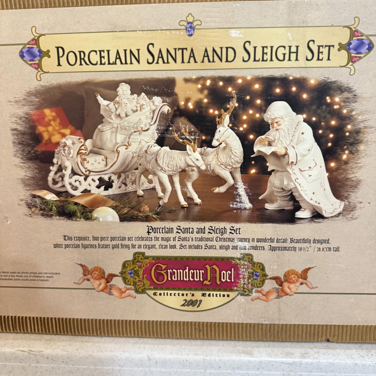 Grandeur Noel Porcelain Santa & Sleigh Set (B4-HS)