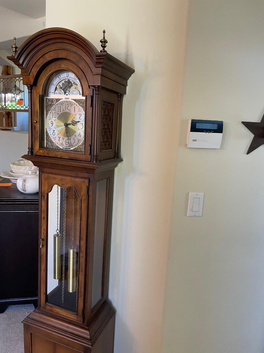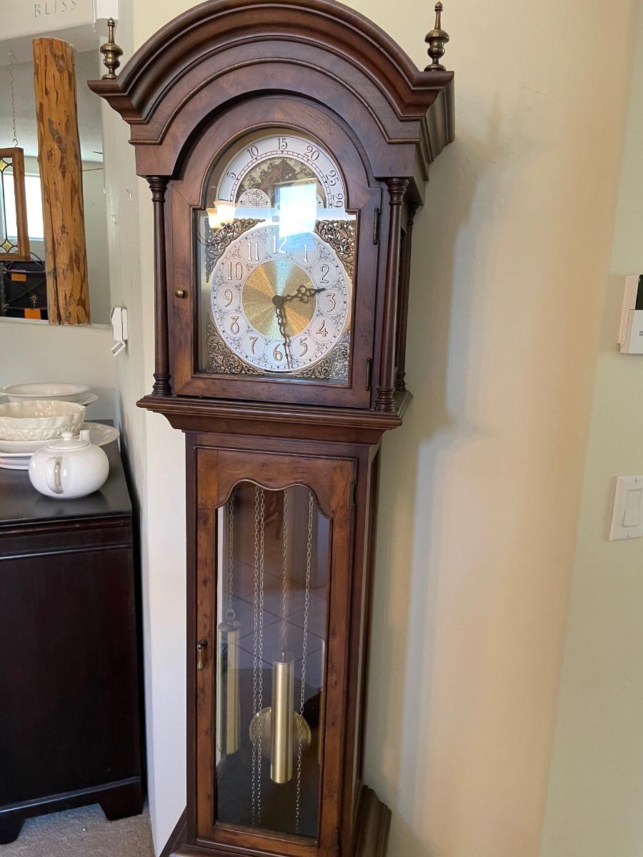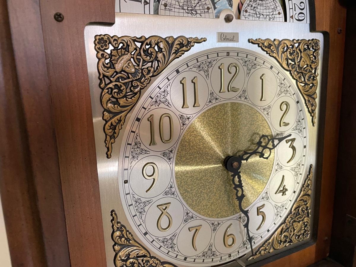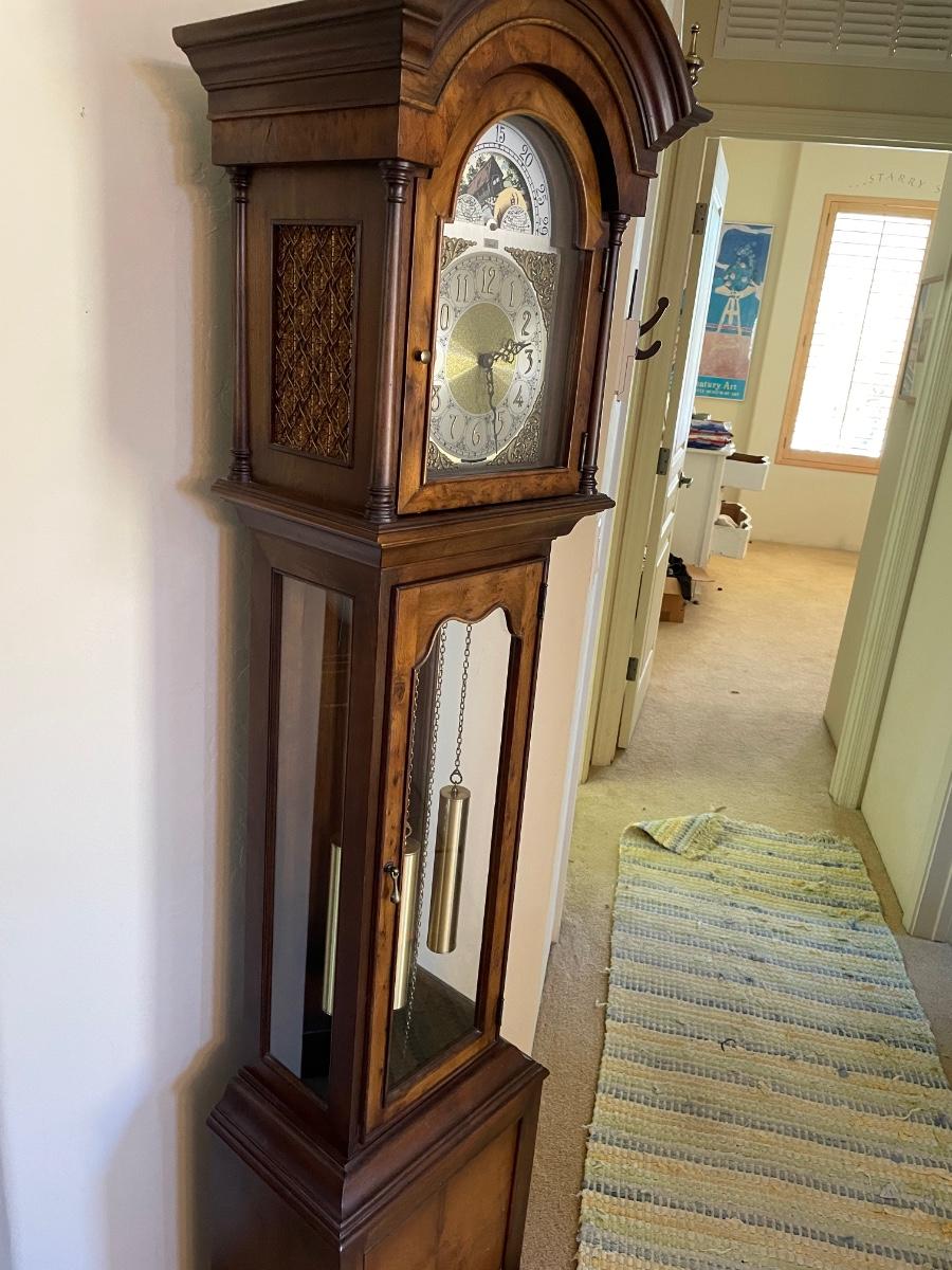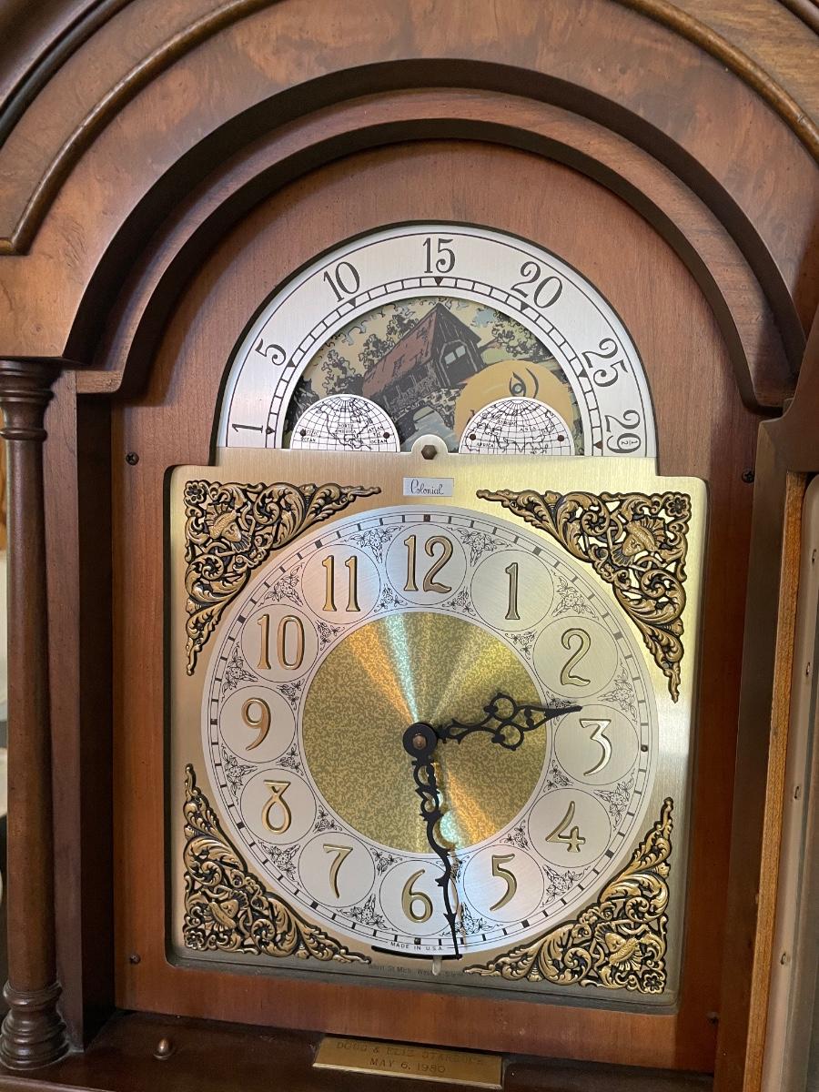 Colonial of Zeeland grandfather clock in great condition, made in the USA. (15inX10inX6in) Serial number# 7719698.