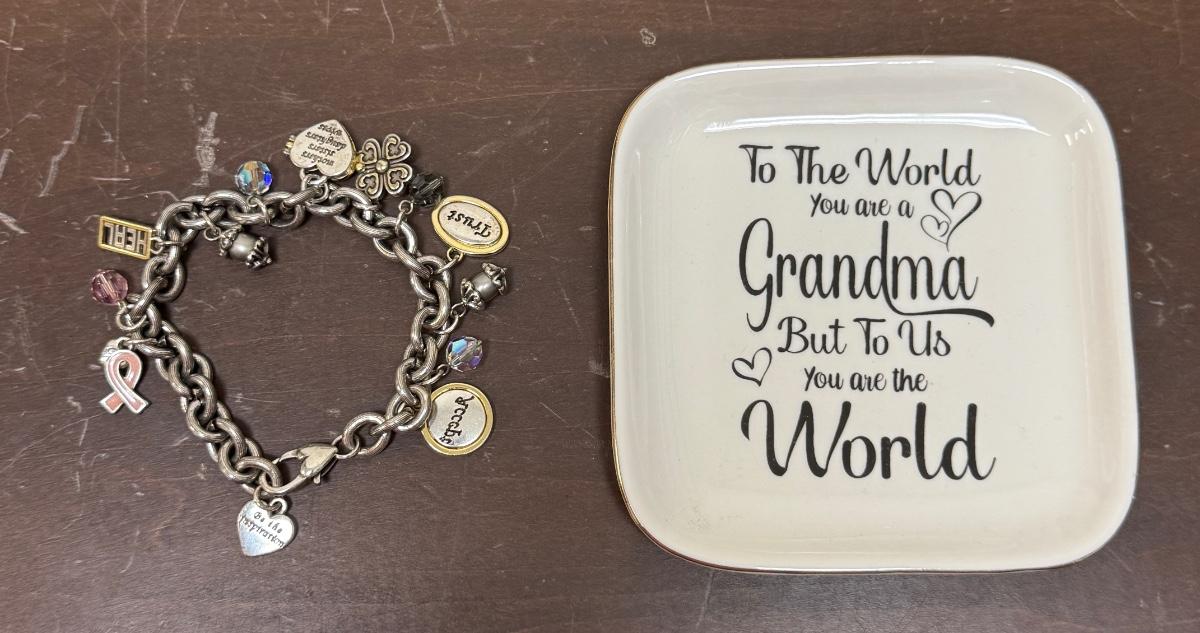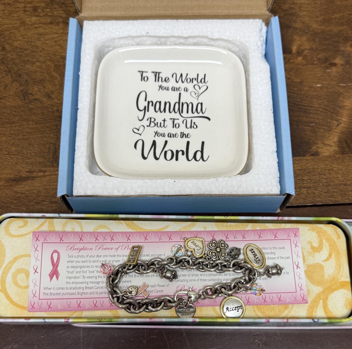 Grandma Gift Lot- Trinket Dish & Brighton Charm Bracelet