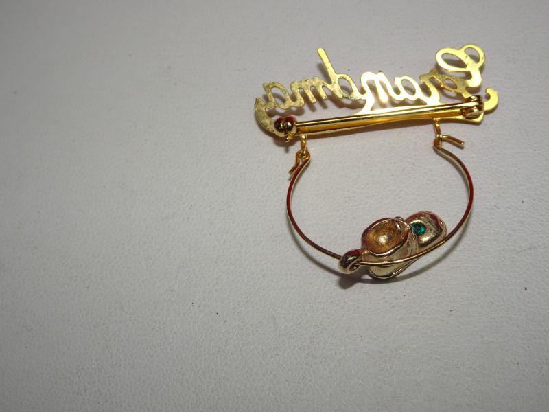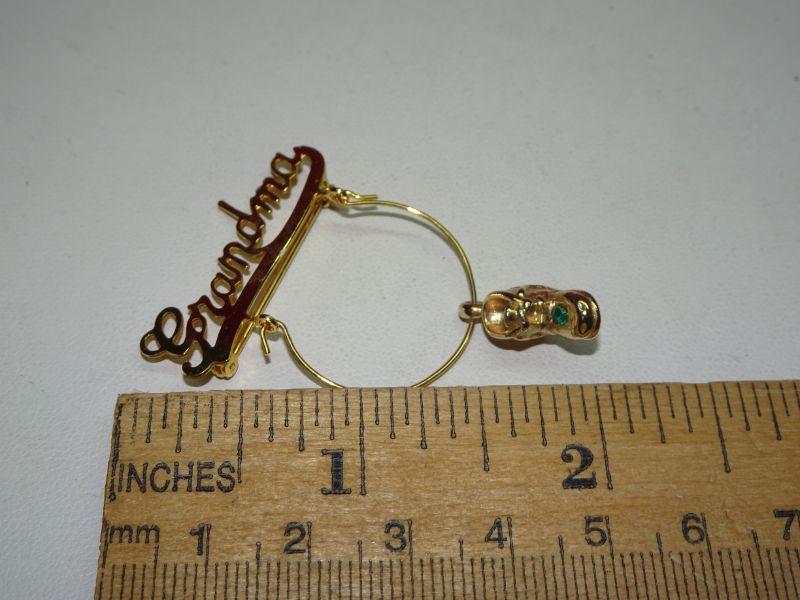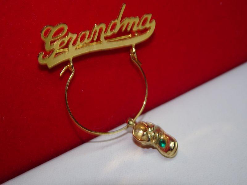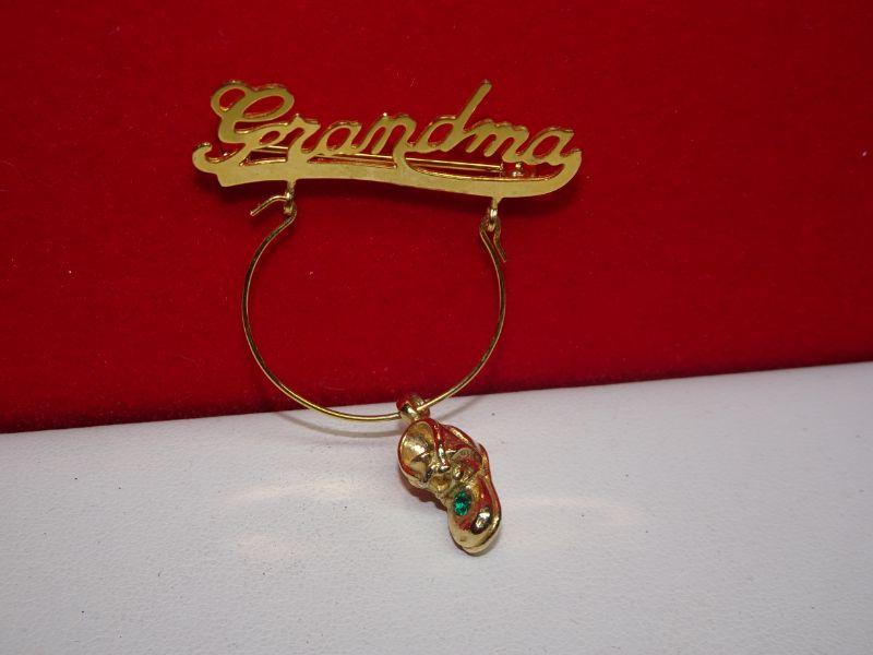 Grandma Pin Pendant, Baby Shoe Charm Emerald Color Rhinestone