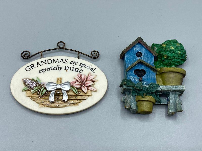 "Grandmas are Special Especially Mine" fridge magnet and a birdhouse magnet. Great gifts. Good condition.