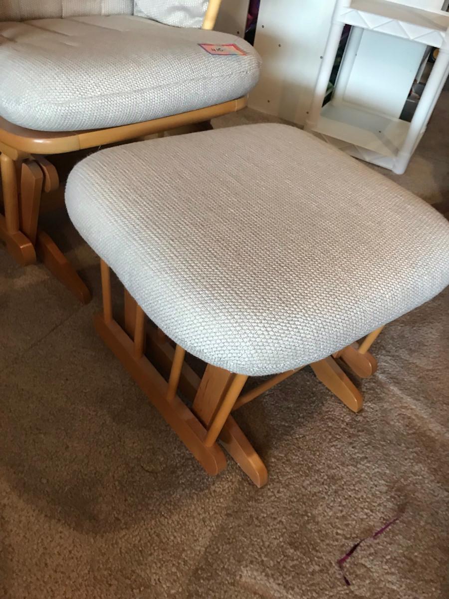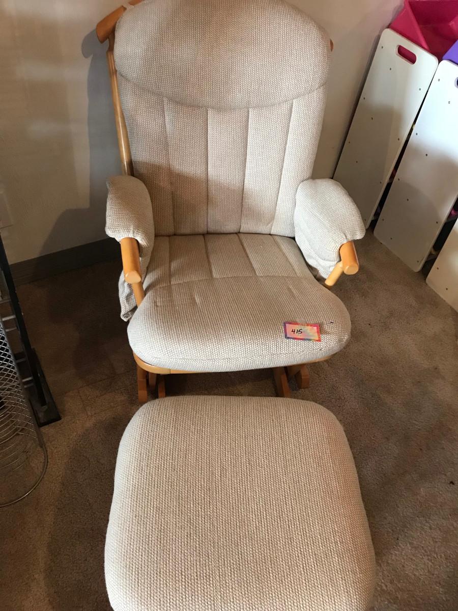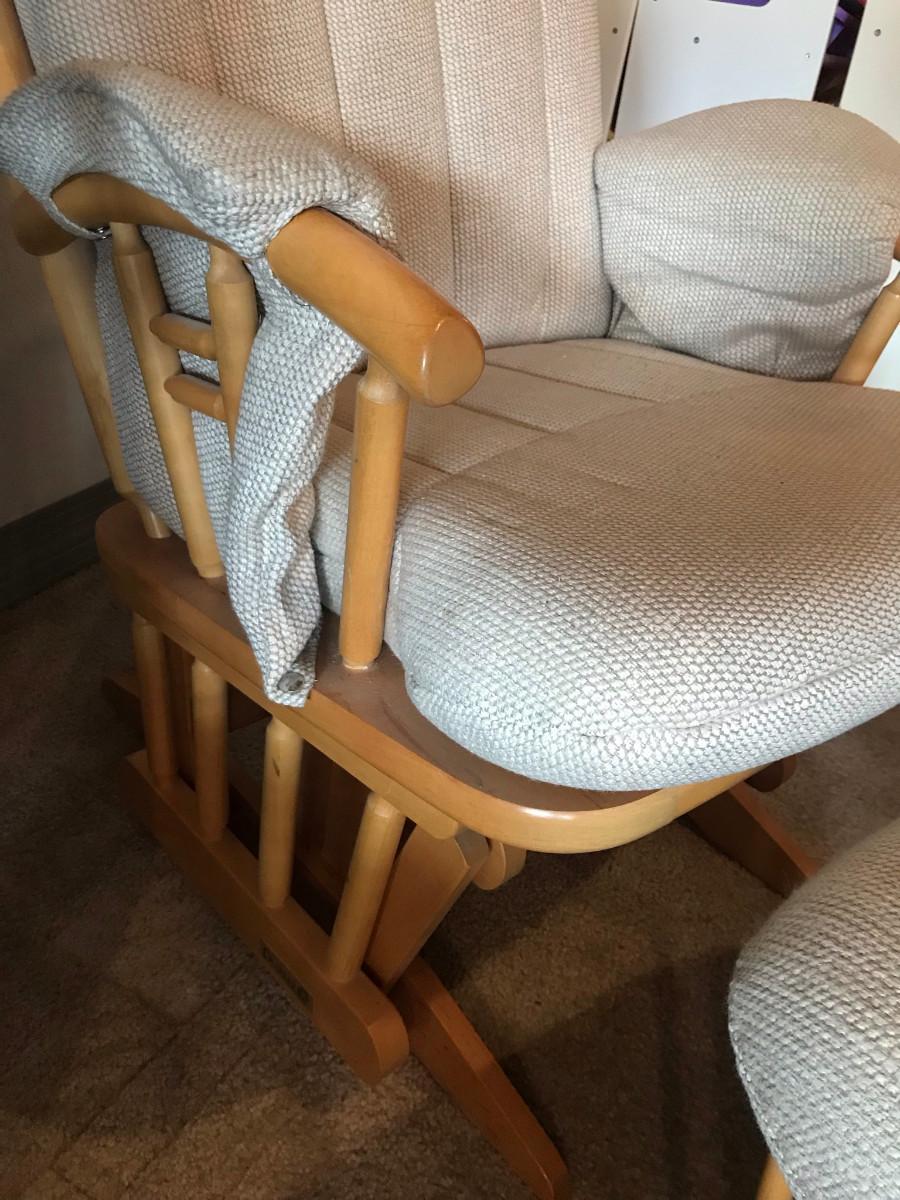 This had to be Grandma's chair where she watched all of the play time excitement! Very clean, beige upholstry.