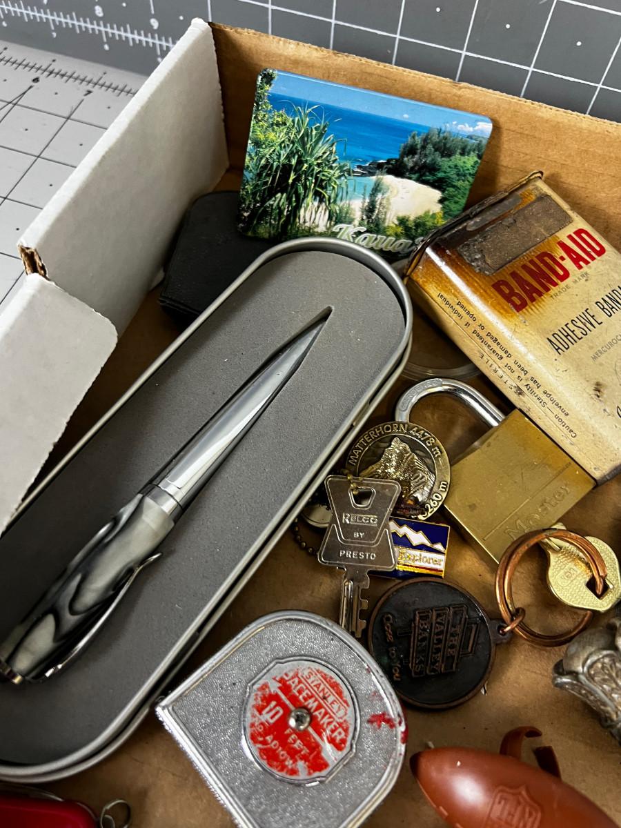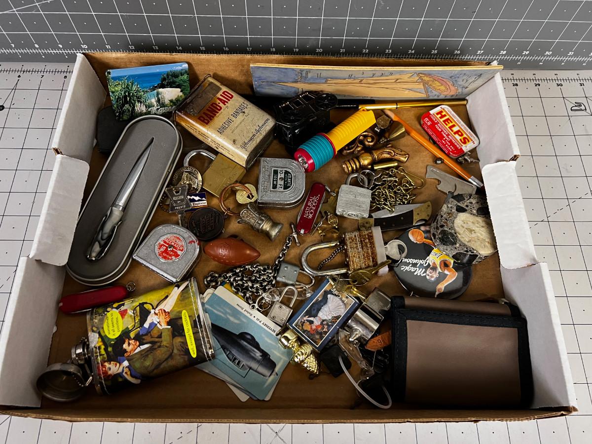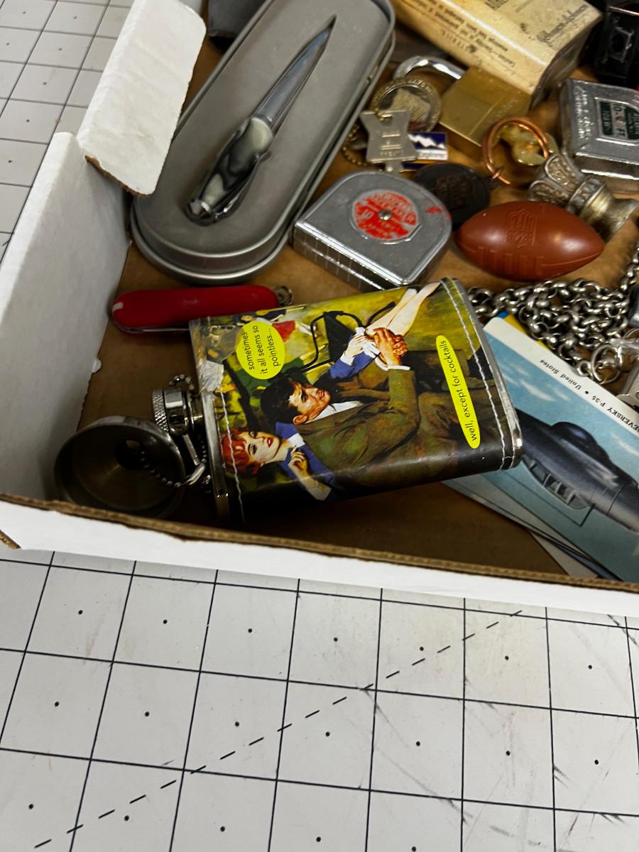 Grandpa's Junk Drawer Clean Out: Knives, Flask, Pen etc.