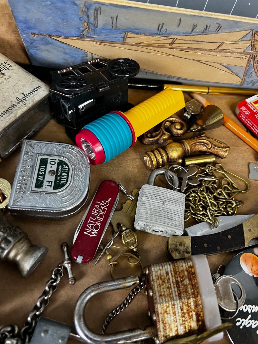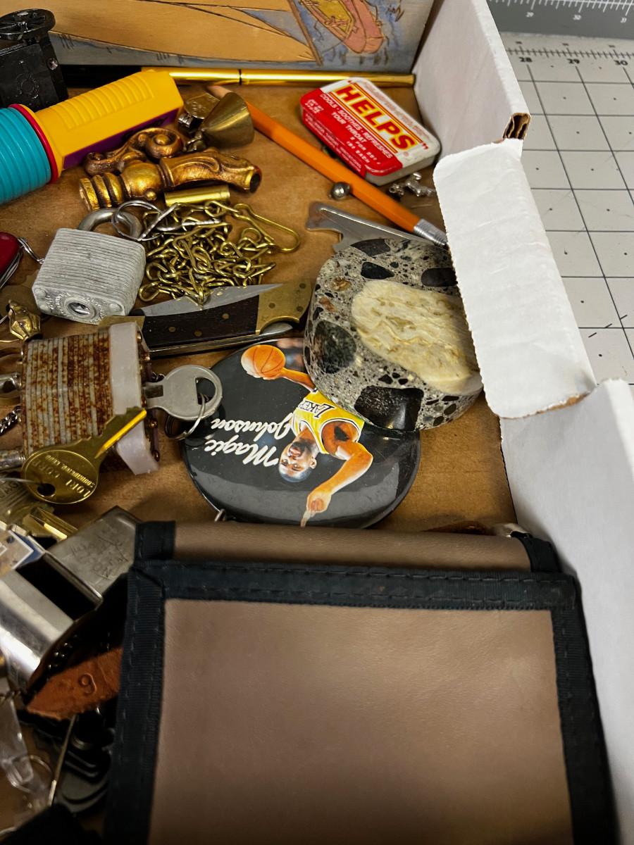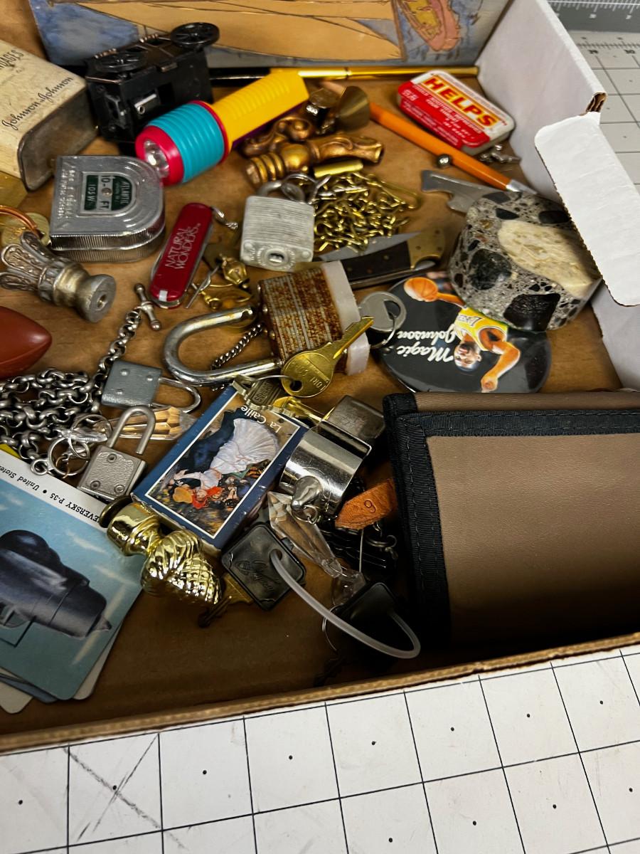Grandpa's Junk Drawer Clean Out: Knives, Flask, Pen etc.