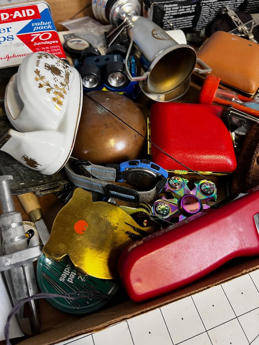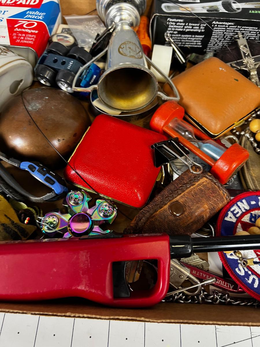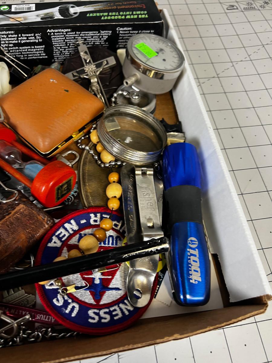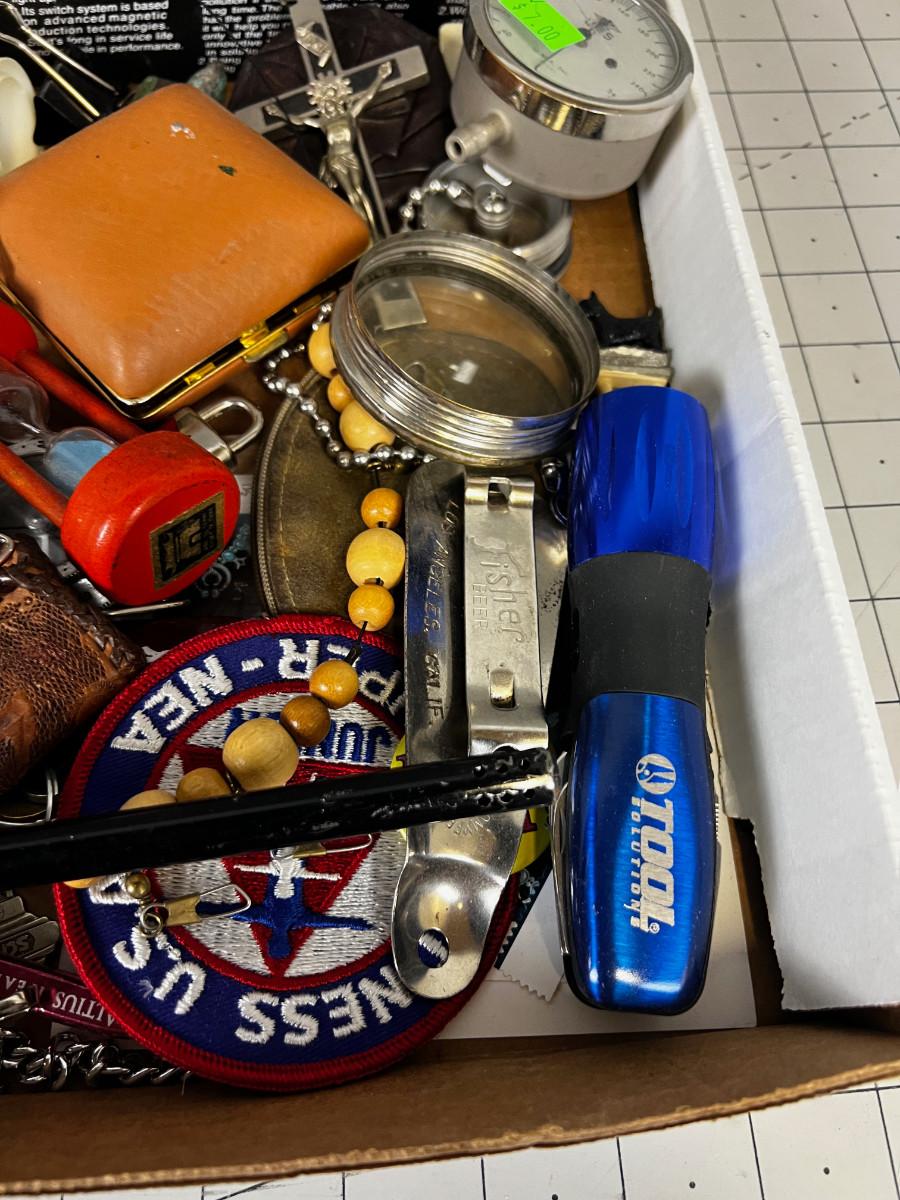 Grandpa's Junk Drawer: Watch, Trophy, Flashlight etc.