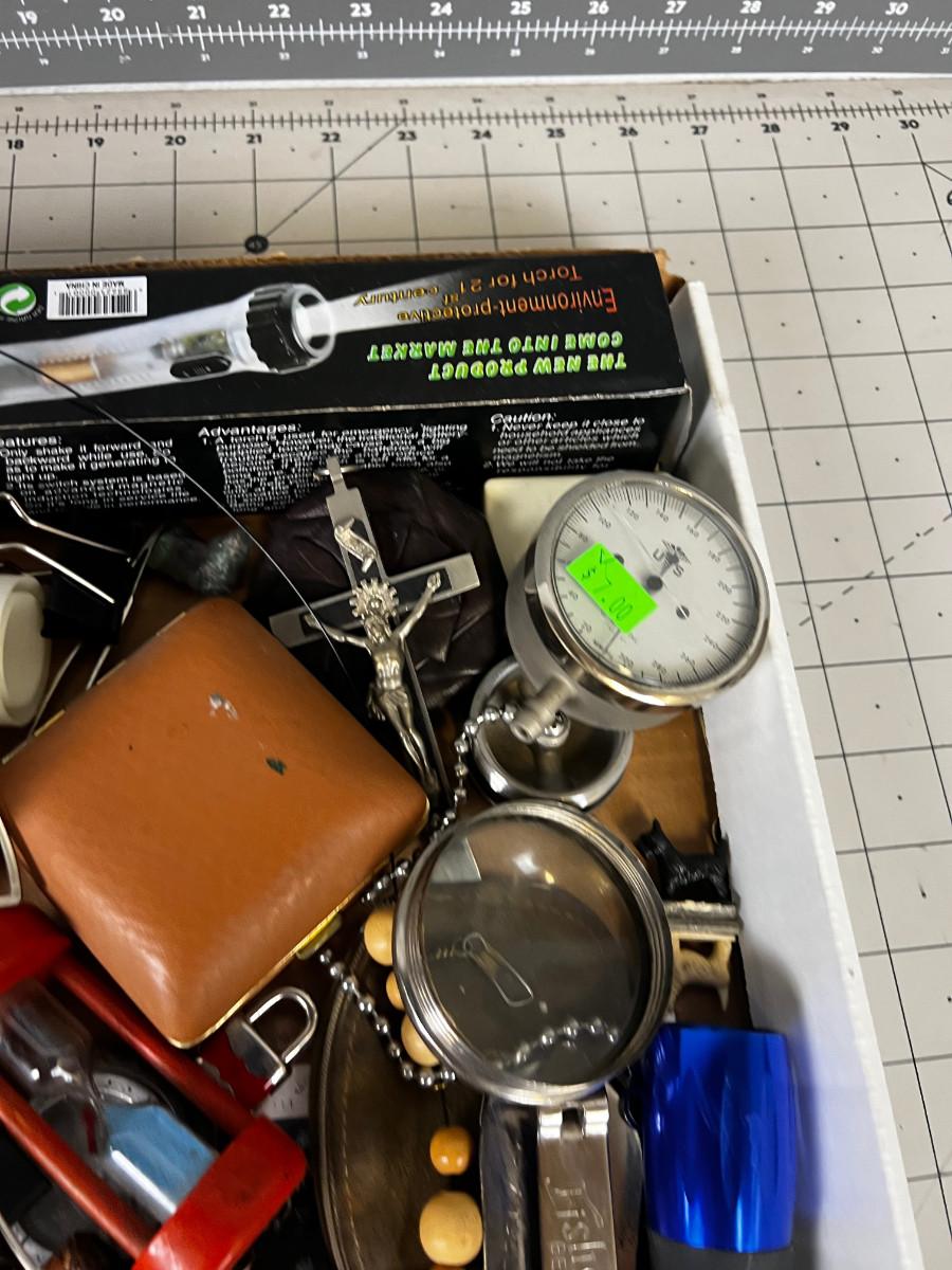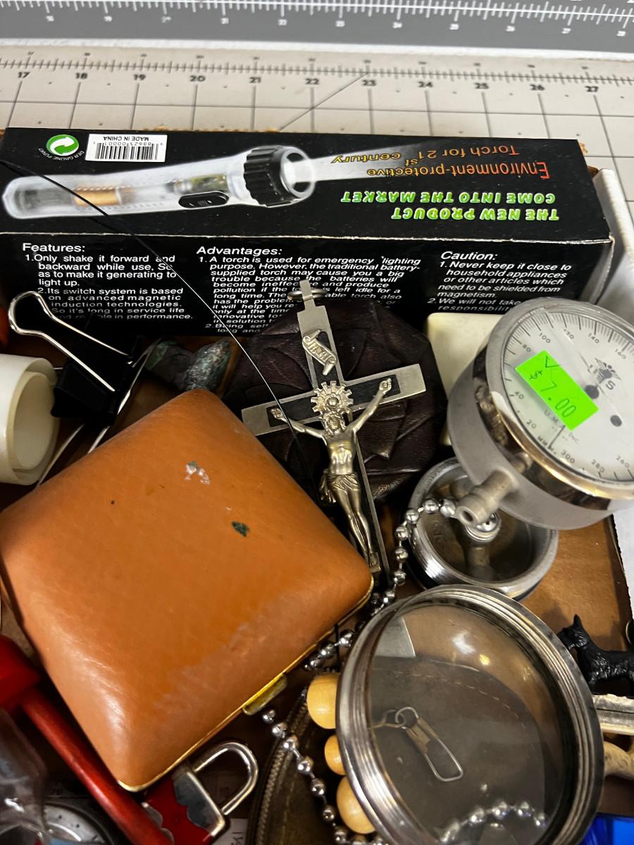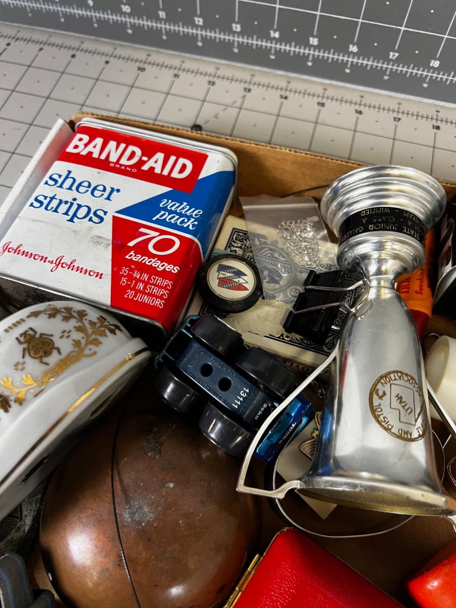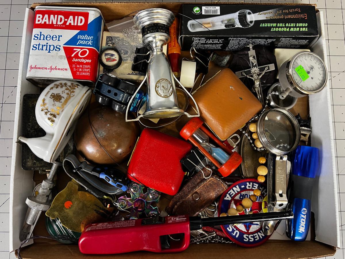 Grandpa's Junk Drawer: Watch, Trophy, Flashlight etc.