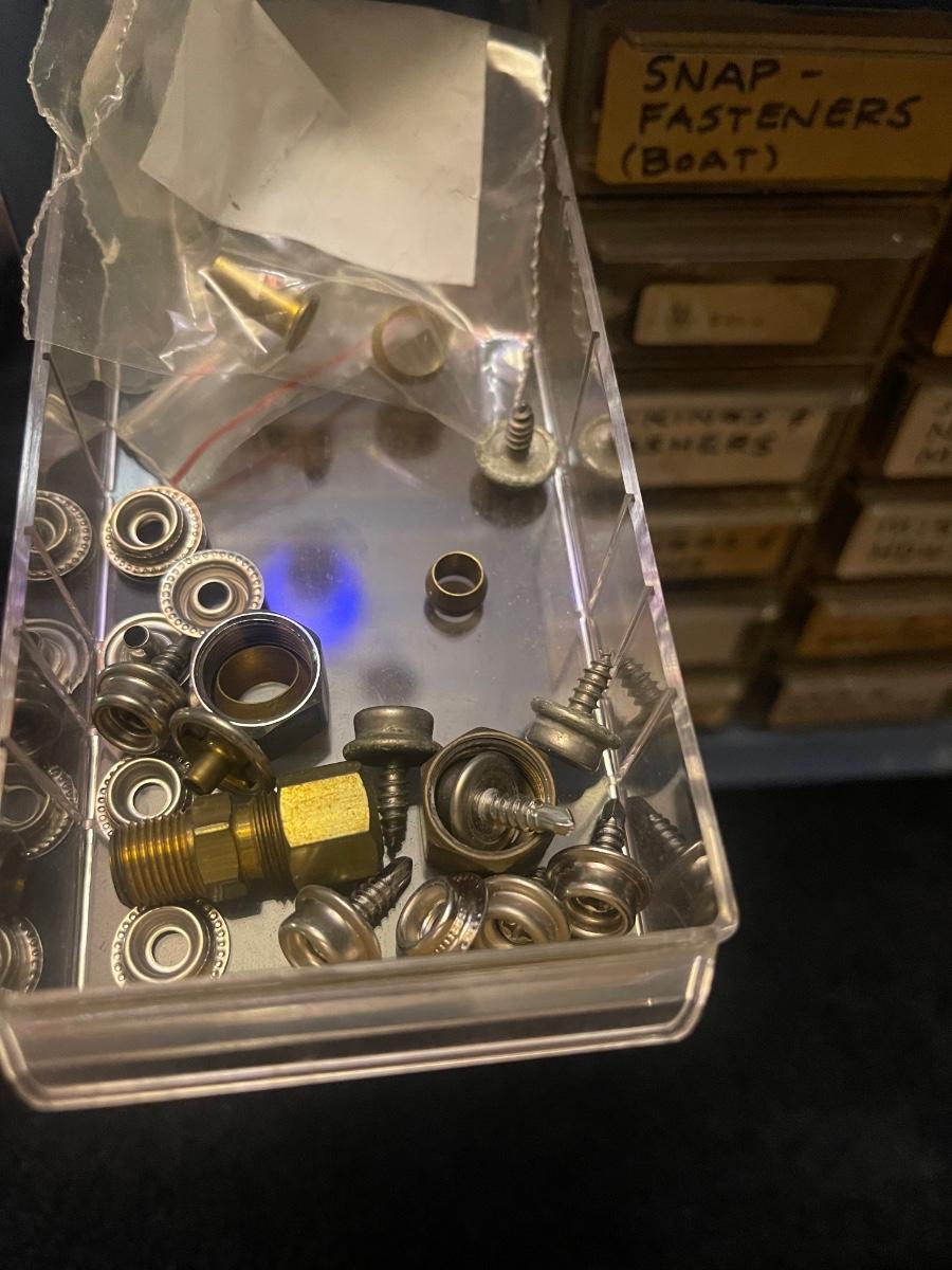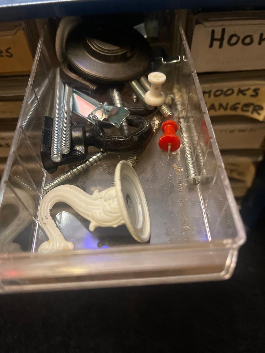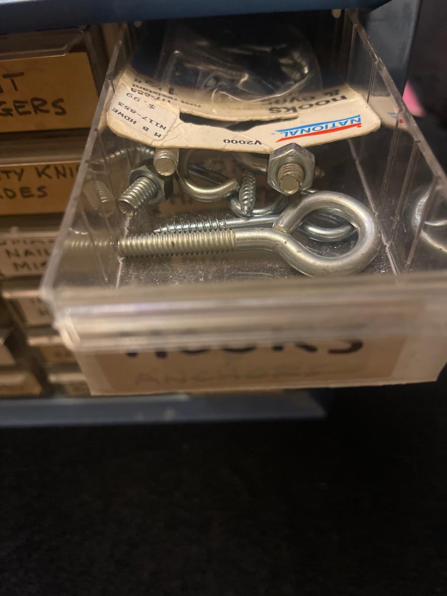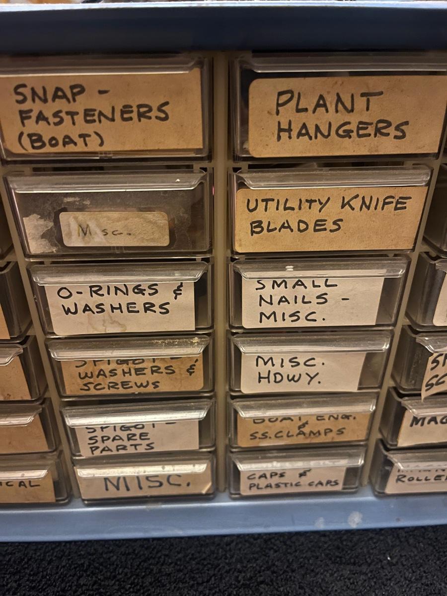 Old vintage parts box from grandpas shed full of miscellaneous parts. Each drawer is labeled and actually contains those parts. A great pickup for someone!!