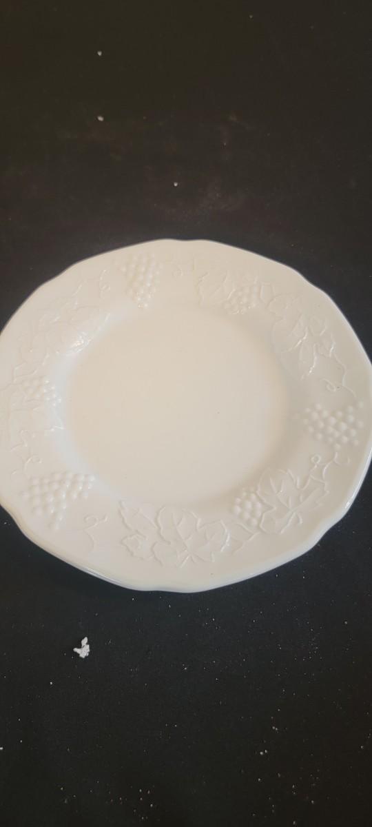 Grape milk glass plates, Dublin carafe, plus