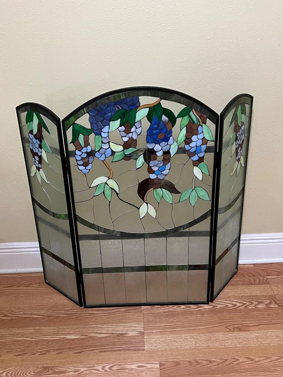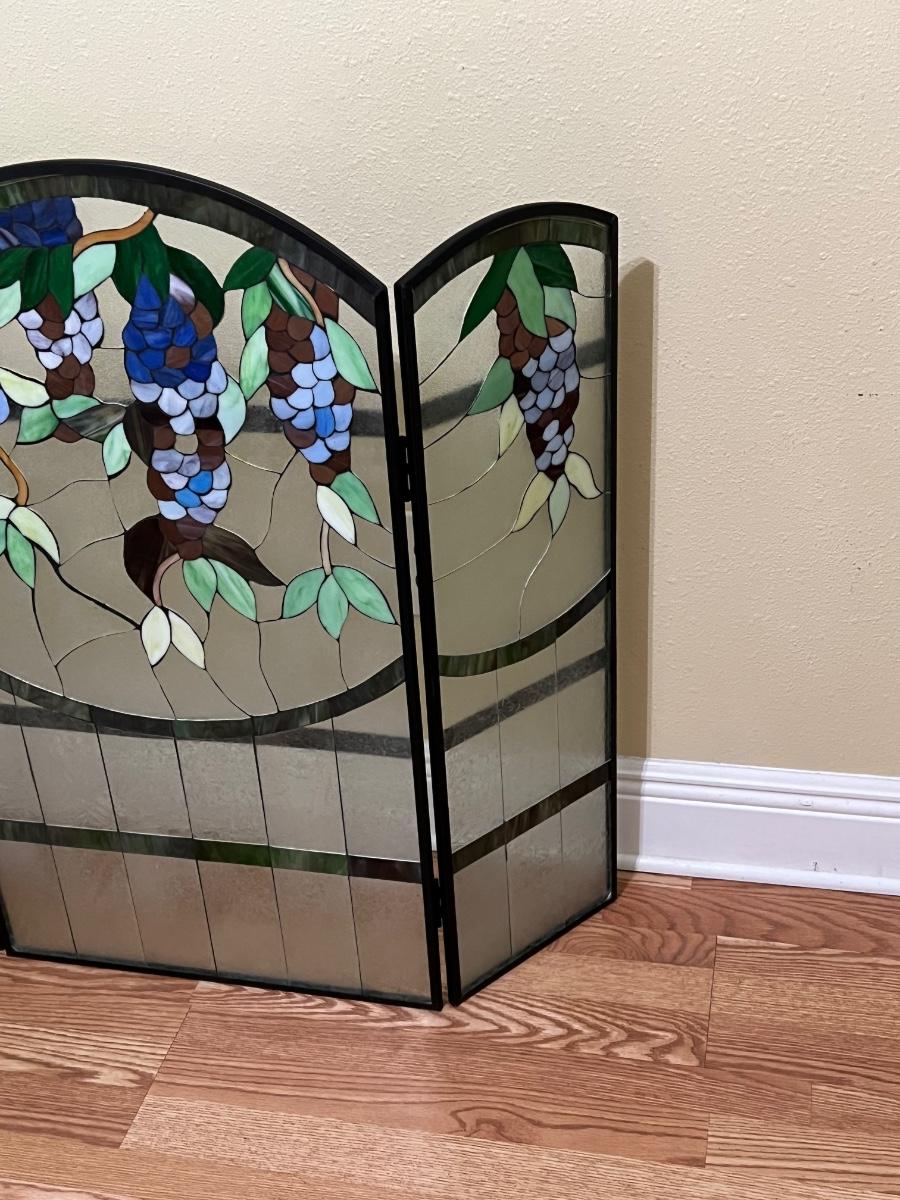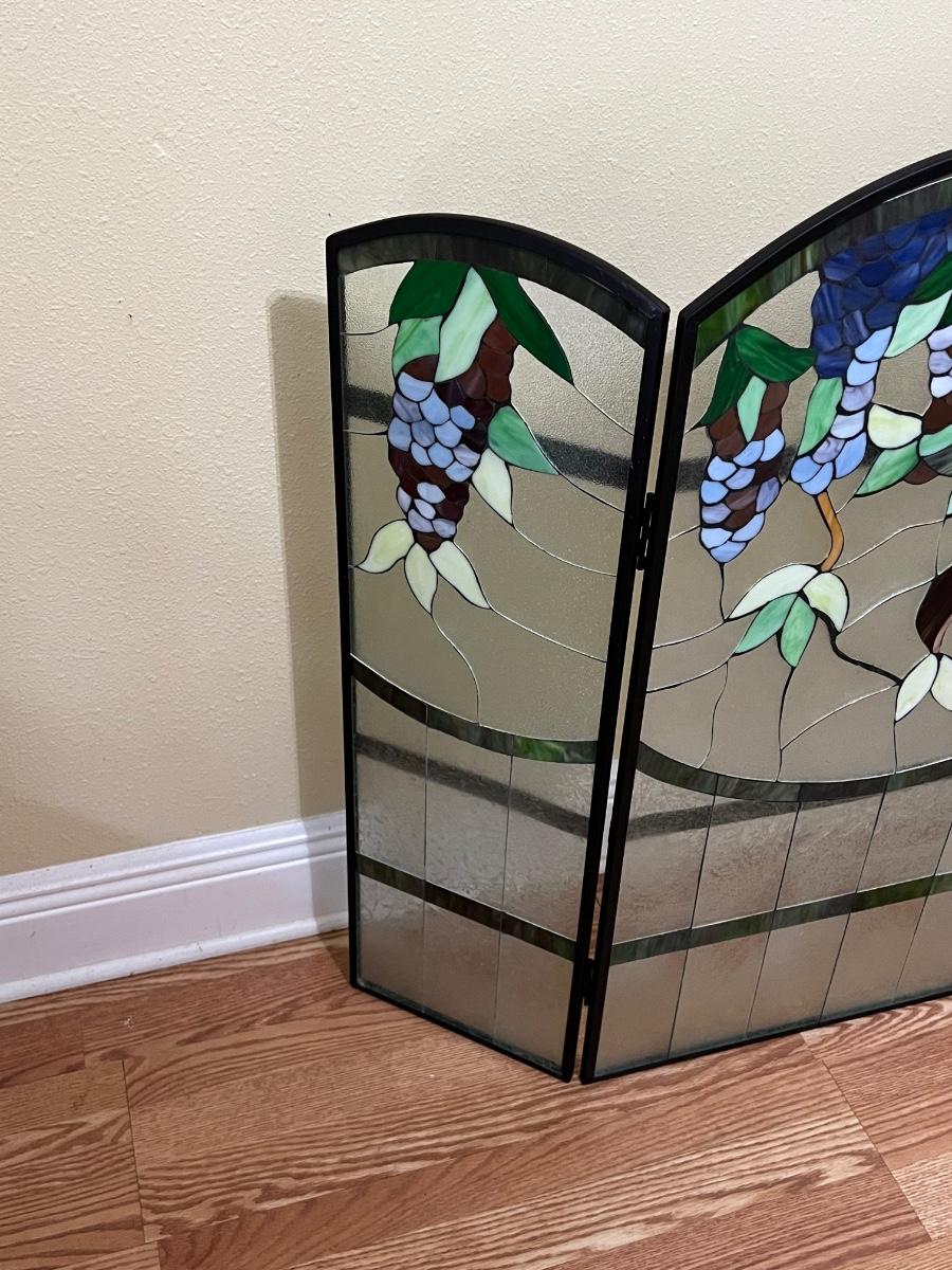 Grape Stained Glass Fireplace Screen