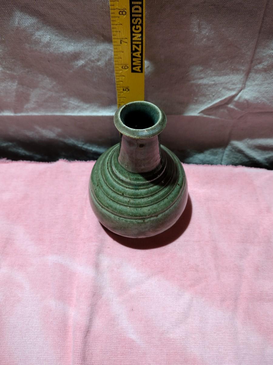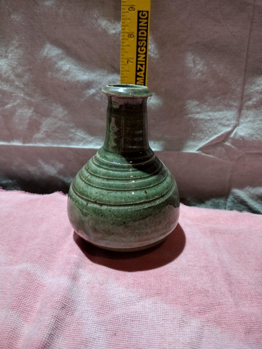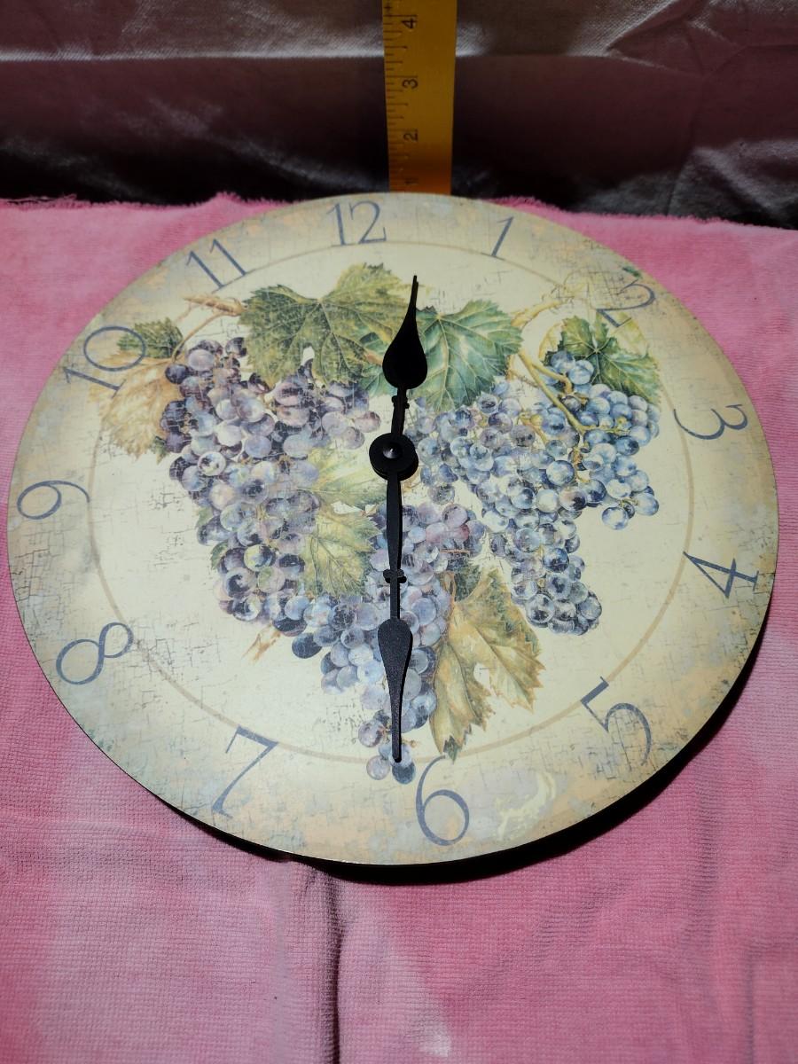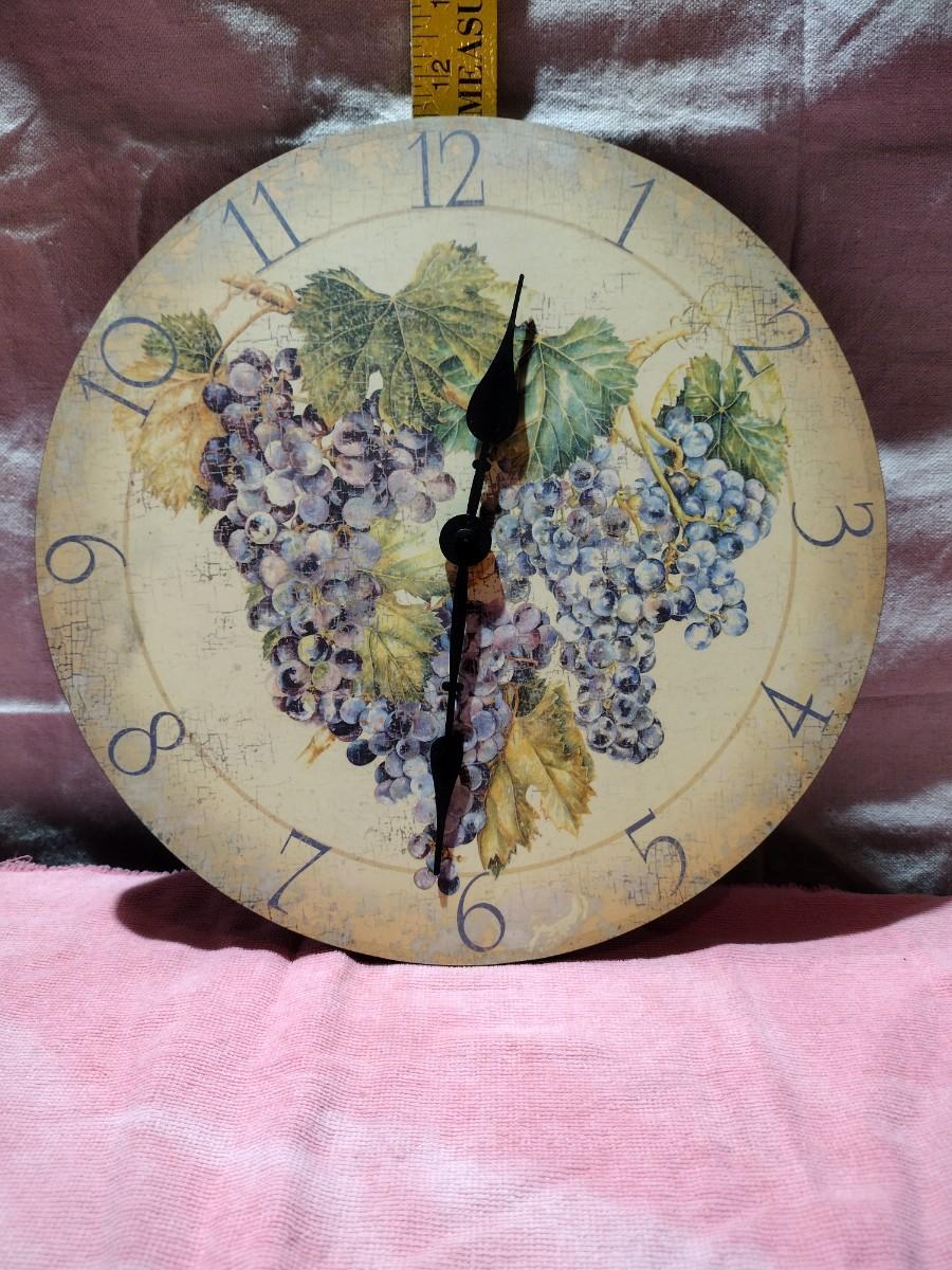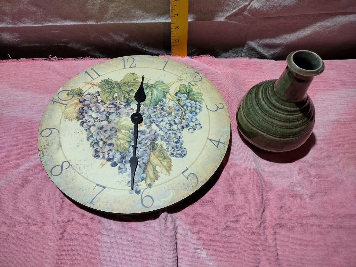 GRAPE VINES KITCHEN CLOCK AND A SIGNED CLAY VASE