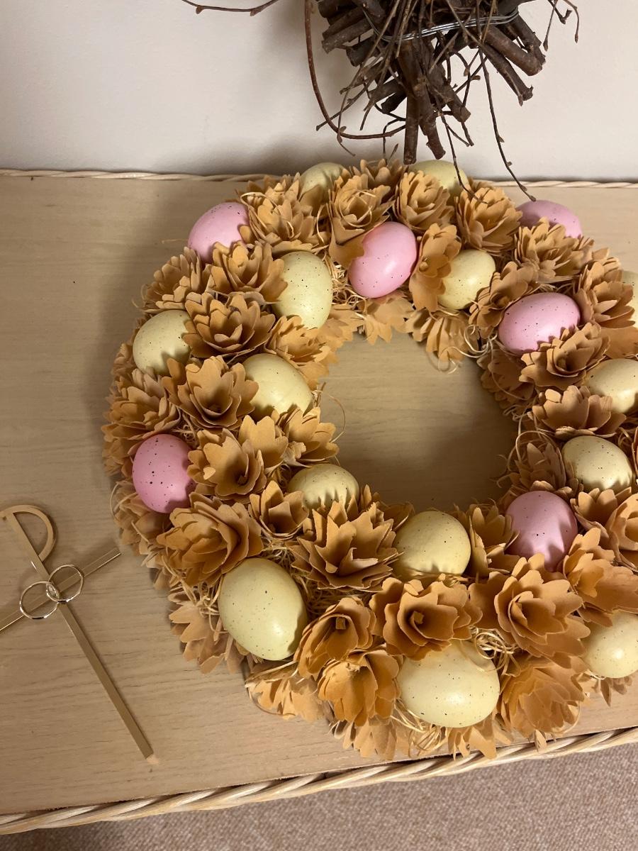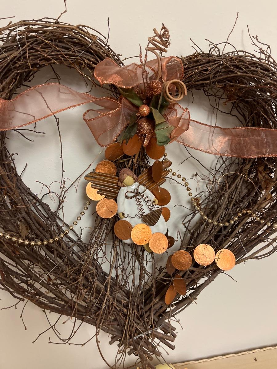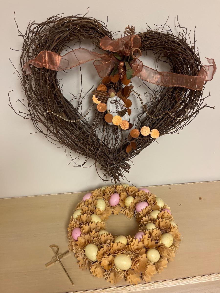 Grapevine heart wreath (24”w) & Easter wreath (16”), cross
