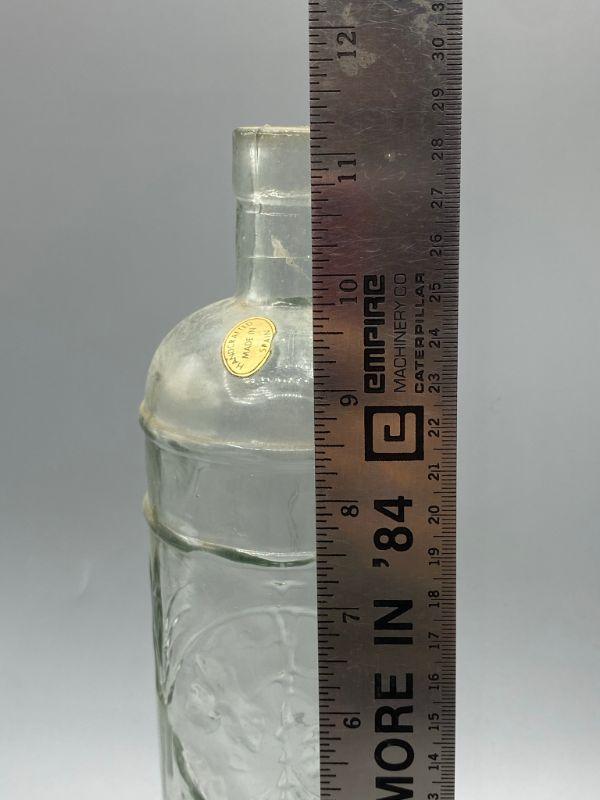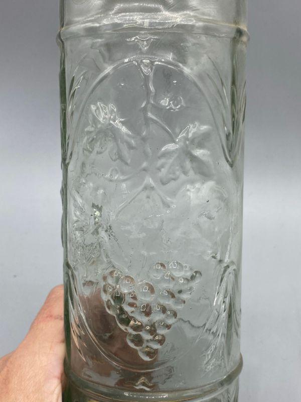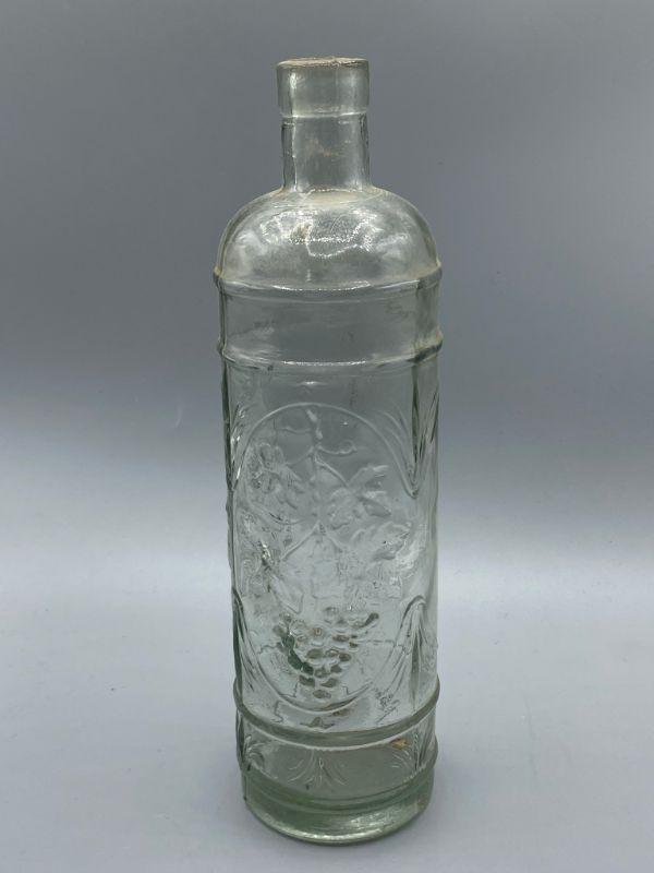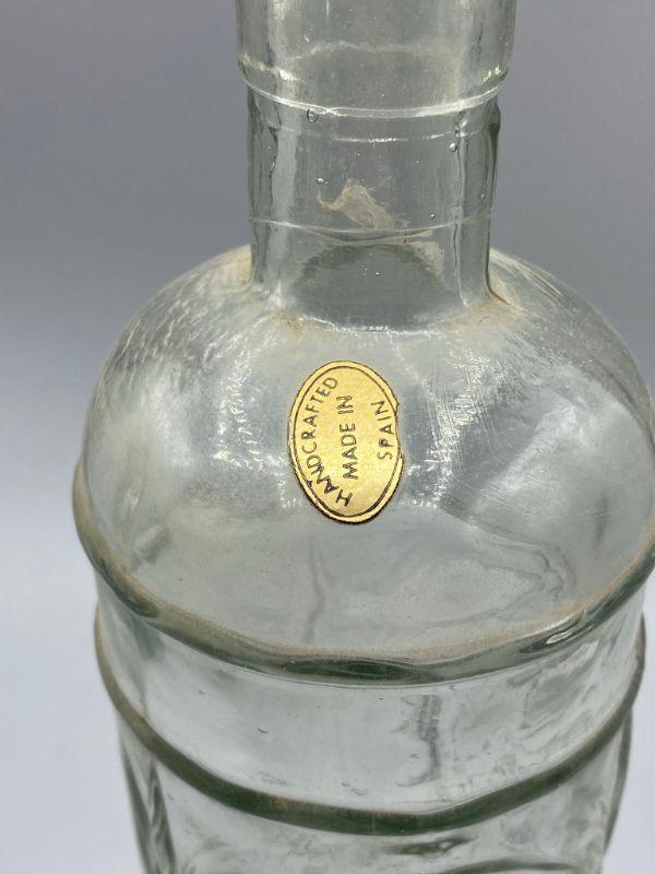 Vintage grapevine patterned bottle. Original sticker. Handcrafted in Spain. A bit over 11" tall. No chips.