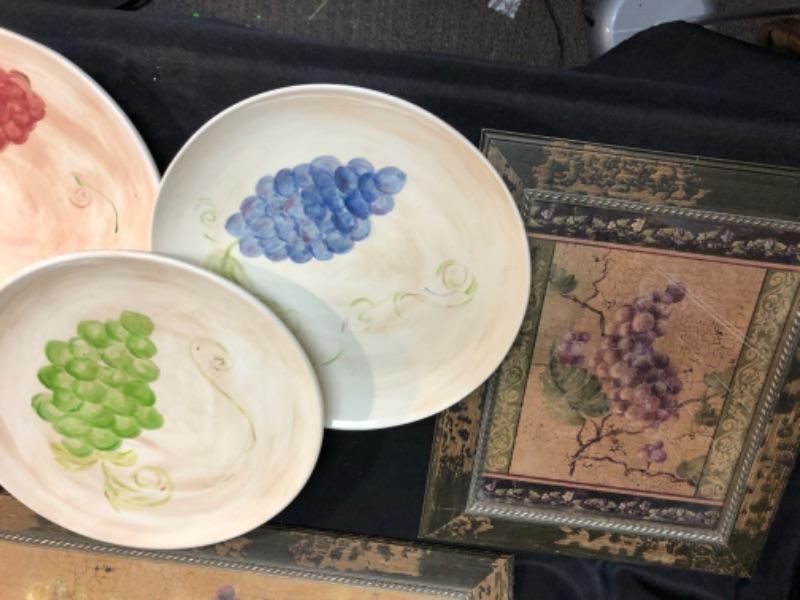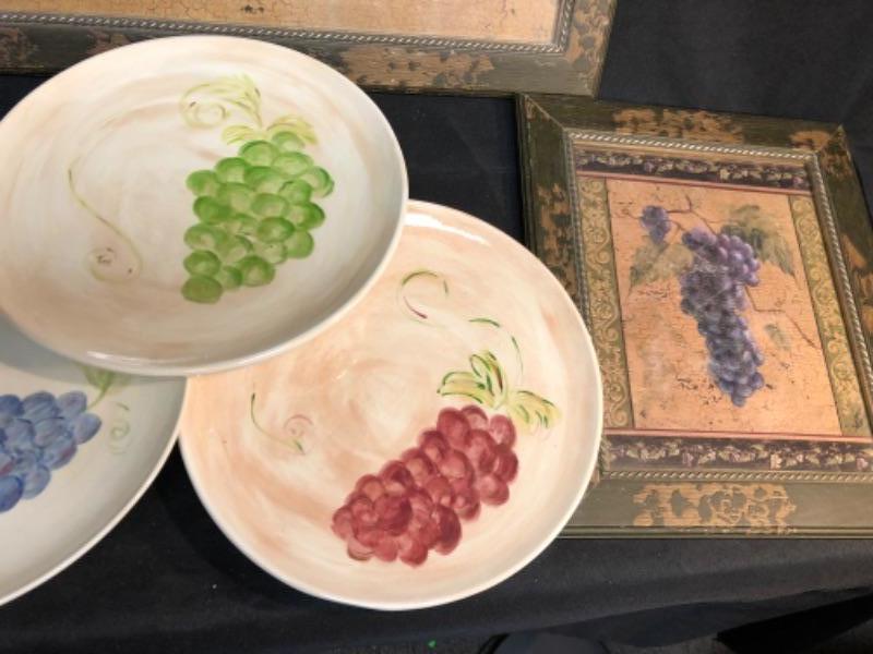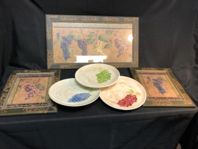 Grape/wine decor four walls and tables, three plates three pictures Vitner