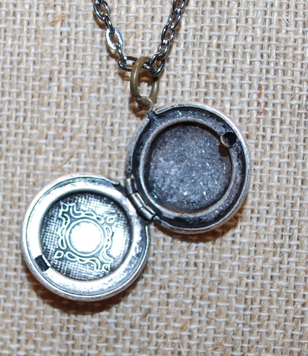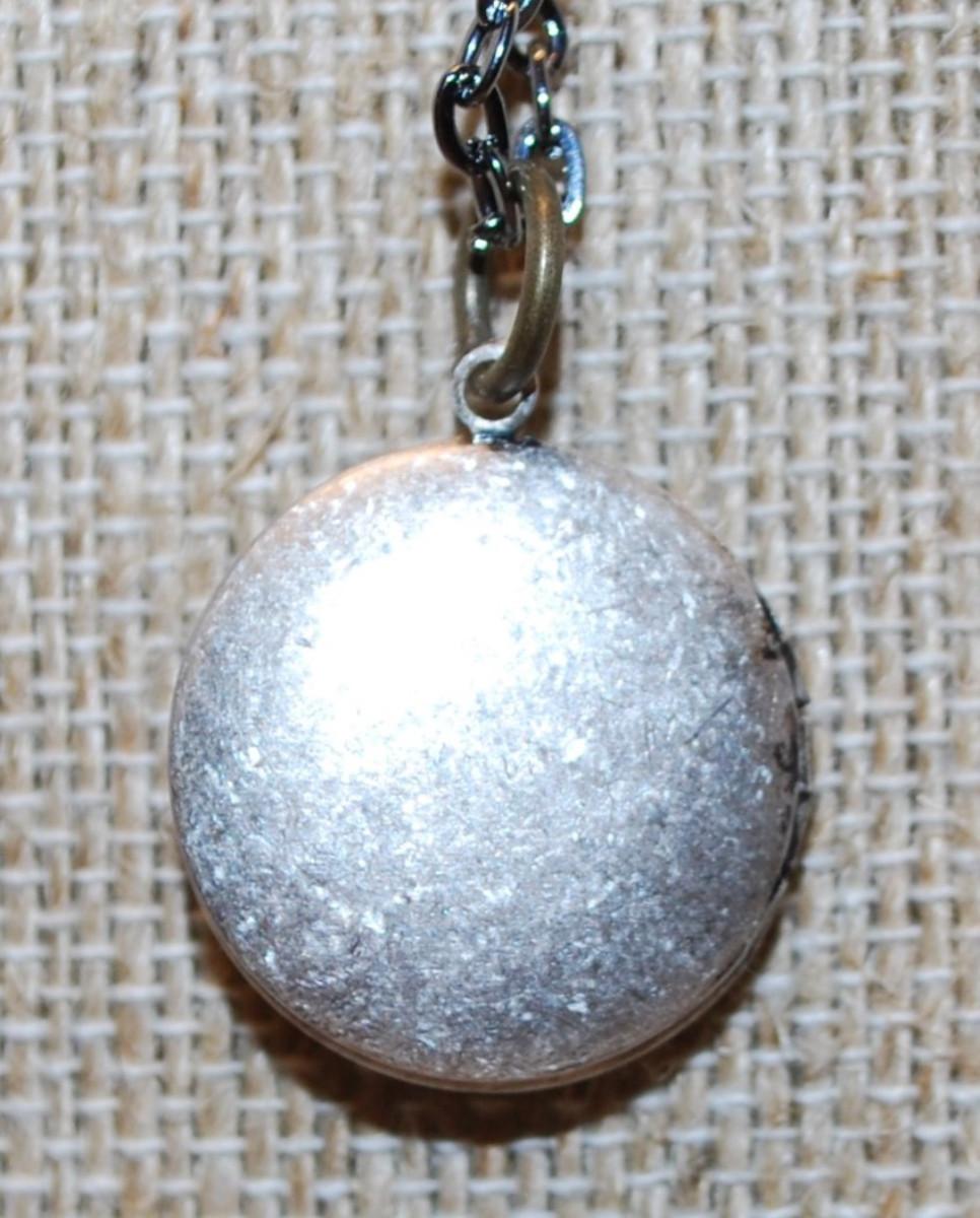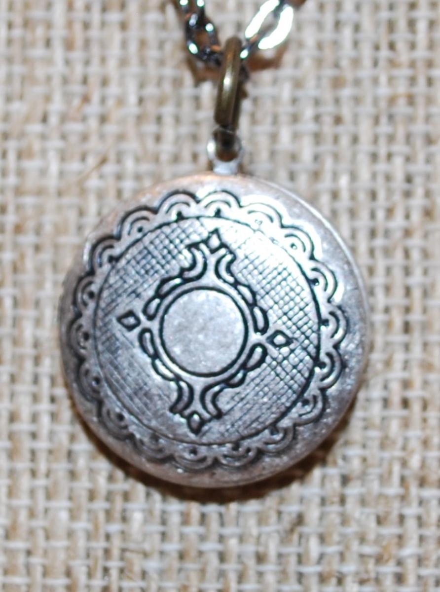 Graphic Designed Round Silver Tone Locket PENDANT (¾" Diam.) on a Dark Necklace Chain 19" L