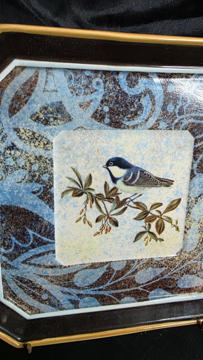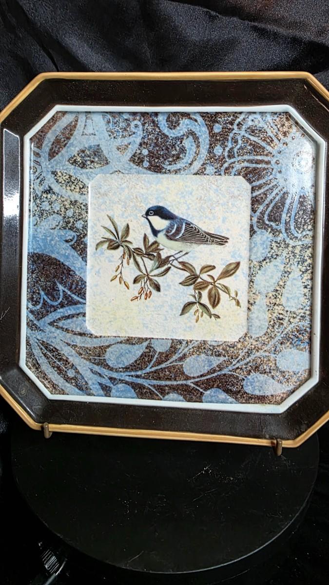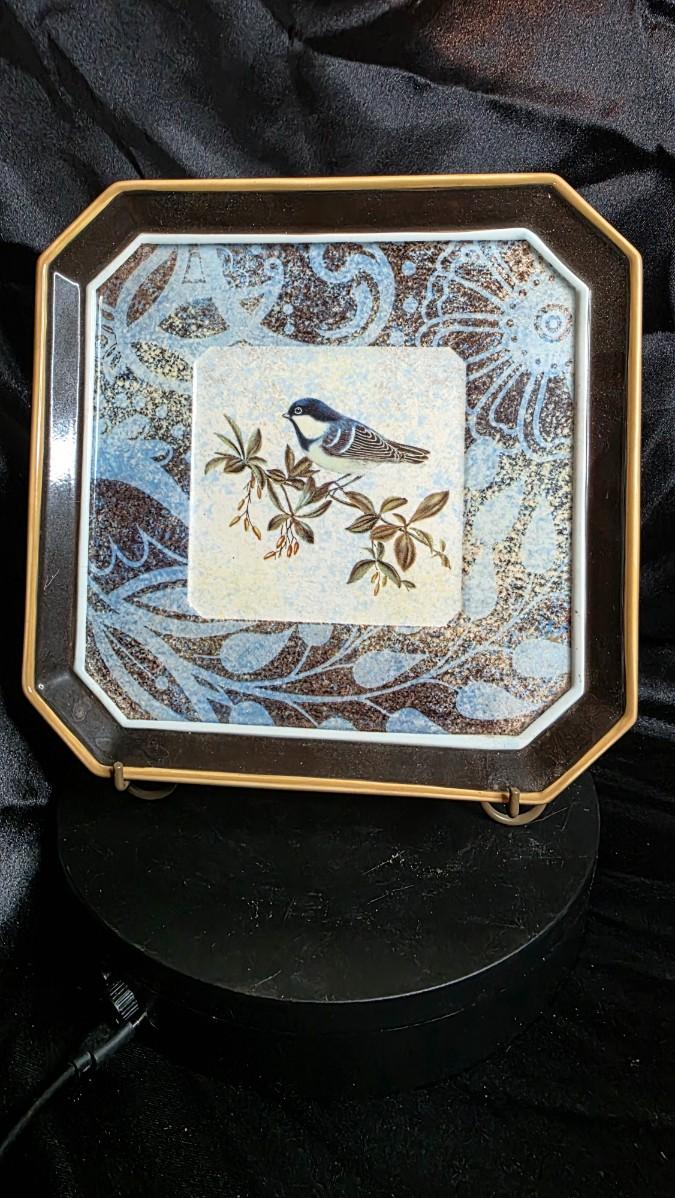 Grasslands Road Chickadee Decorative Square Plate – Vintage-Style Ceramic with Gold Trim – Nature Wildlife Art Dish