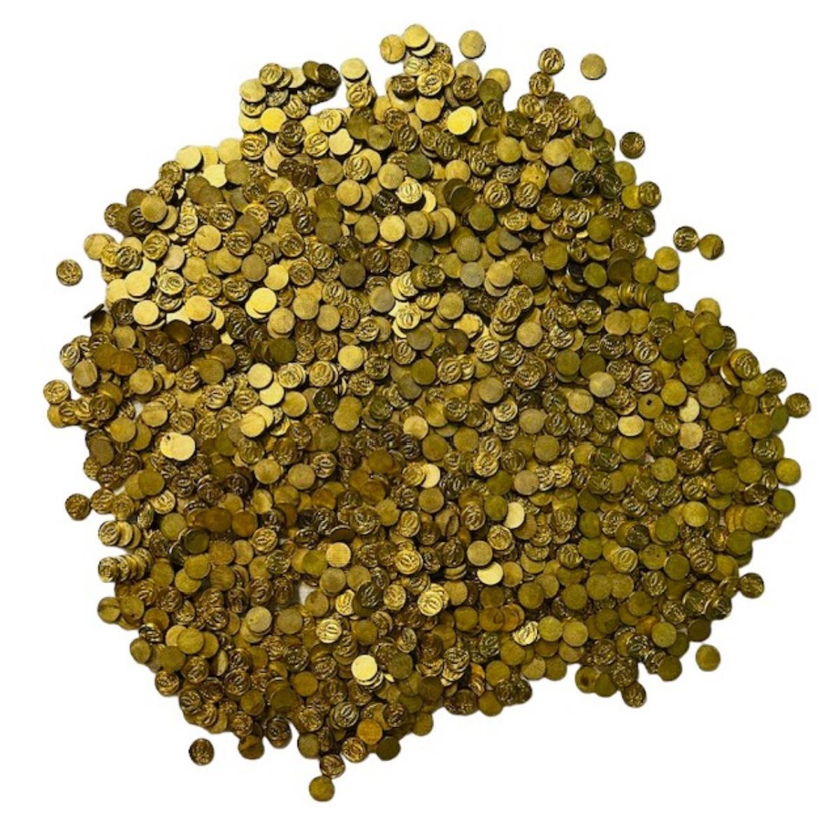 One sided. Unknown metal content. Hundreds of coins. Total weight is 1,571.4 grams.