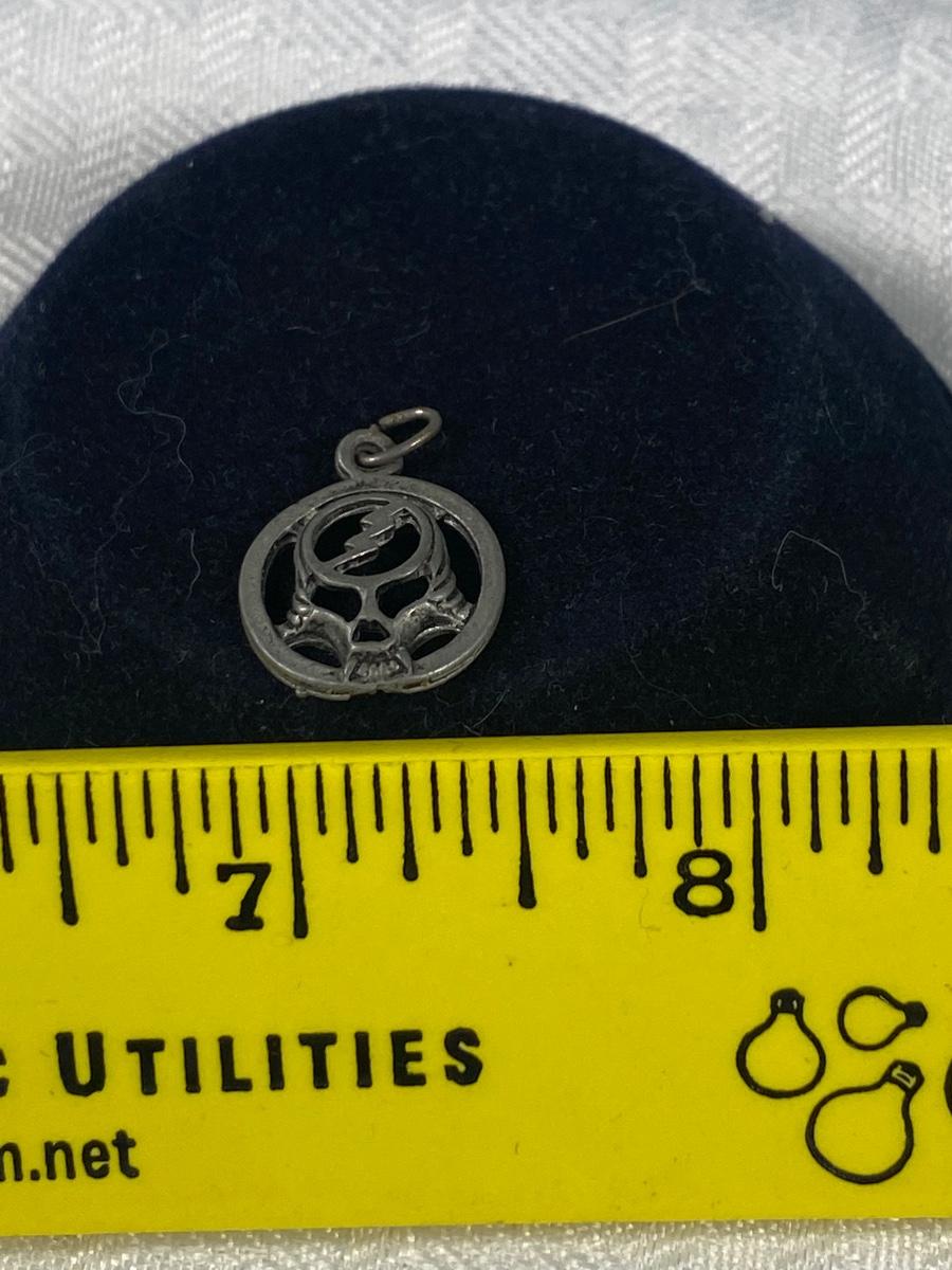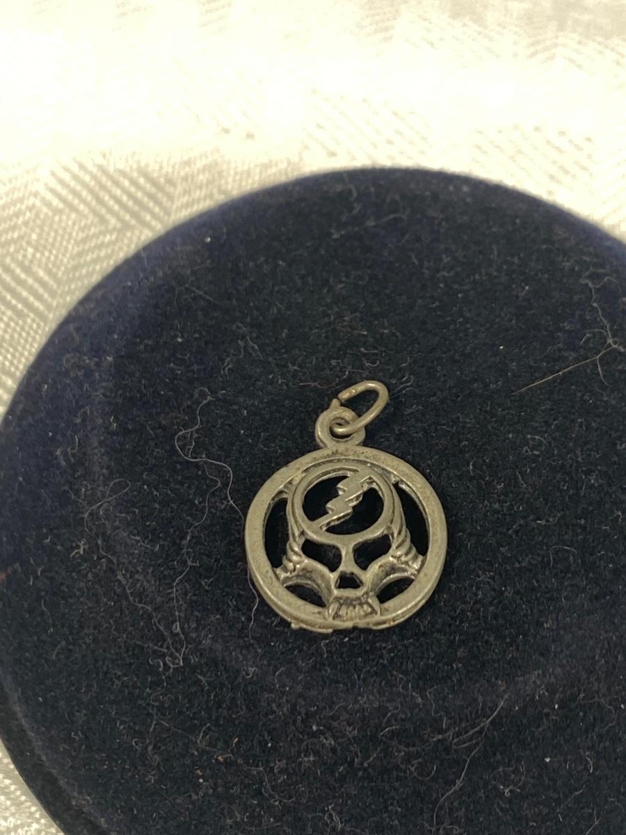 Grateful Dead Skull Pendant Charm. Small under 1/2" size. Silver tone metal.
