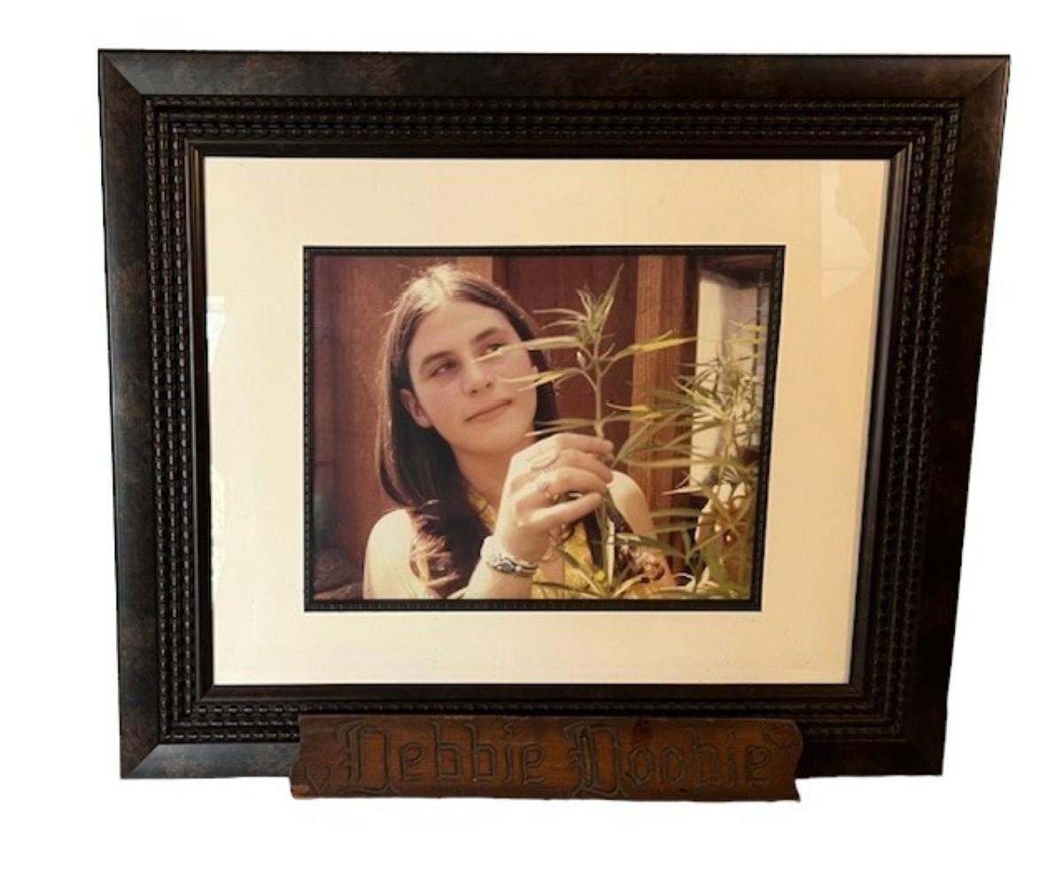 Debbie Doobie was an extended member of the Grateful Dead family. It is alleged that her responsibilities included rolling joints for the band. Close friends with our client. First person. This lot also includes a slide of the picture. Measurement of frame: 25" x 21"; plaque: 15"L x 2.5"H.