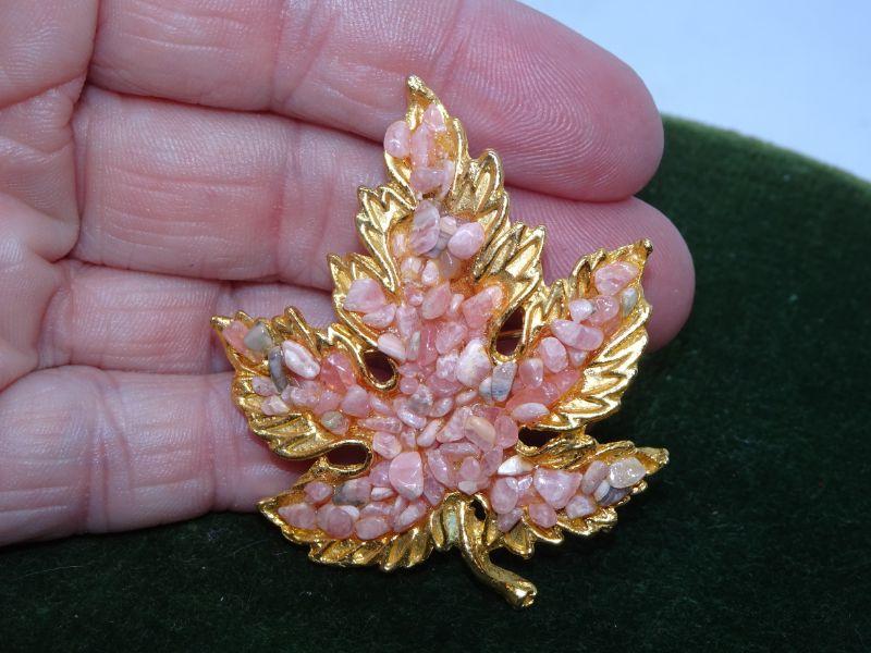 Gravel Gold Tone Leaf Pin - MCM