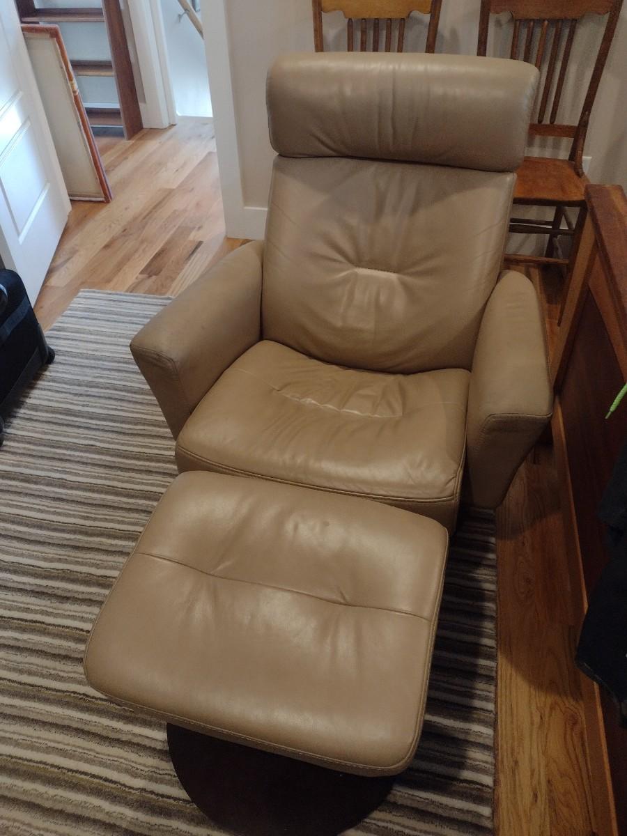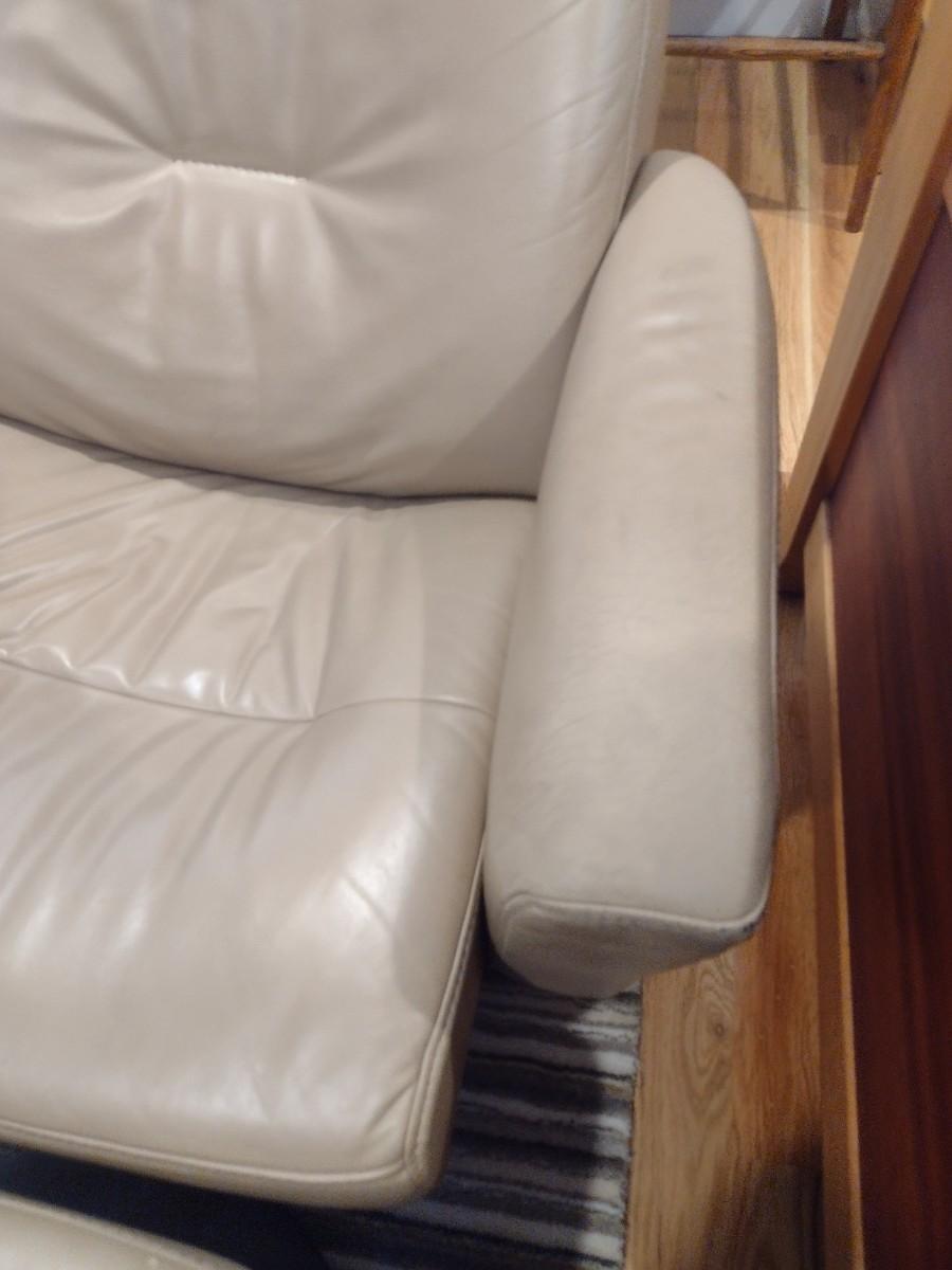 Gravity Chair with Ottoman has some wear to the armrests as shown.