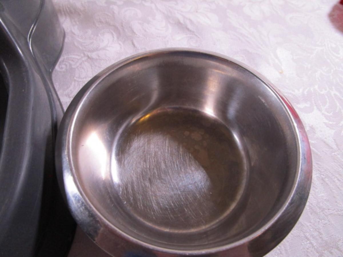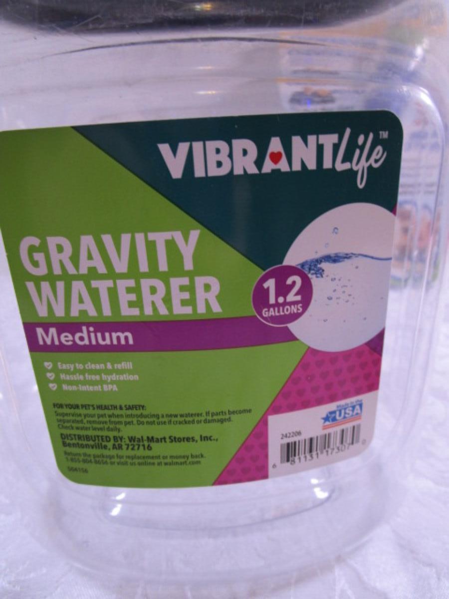 Waterer is 1-1/2 gal, bowl is 5-1/2" in diameter rubber & stainless steel, chewbrush is new in pkg.