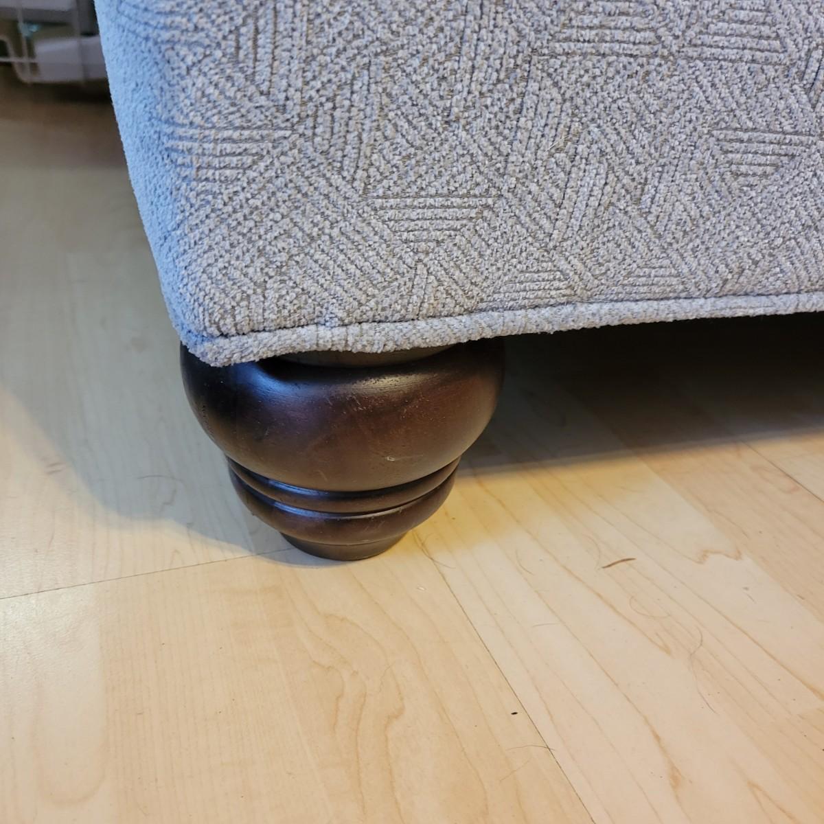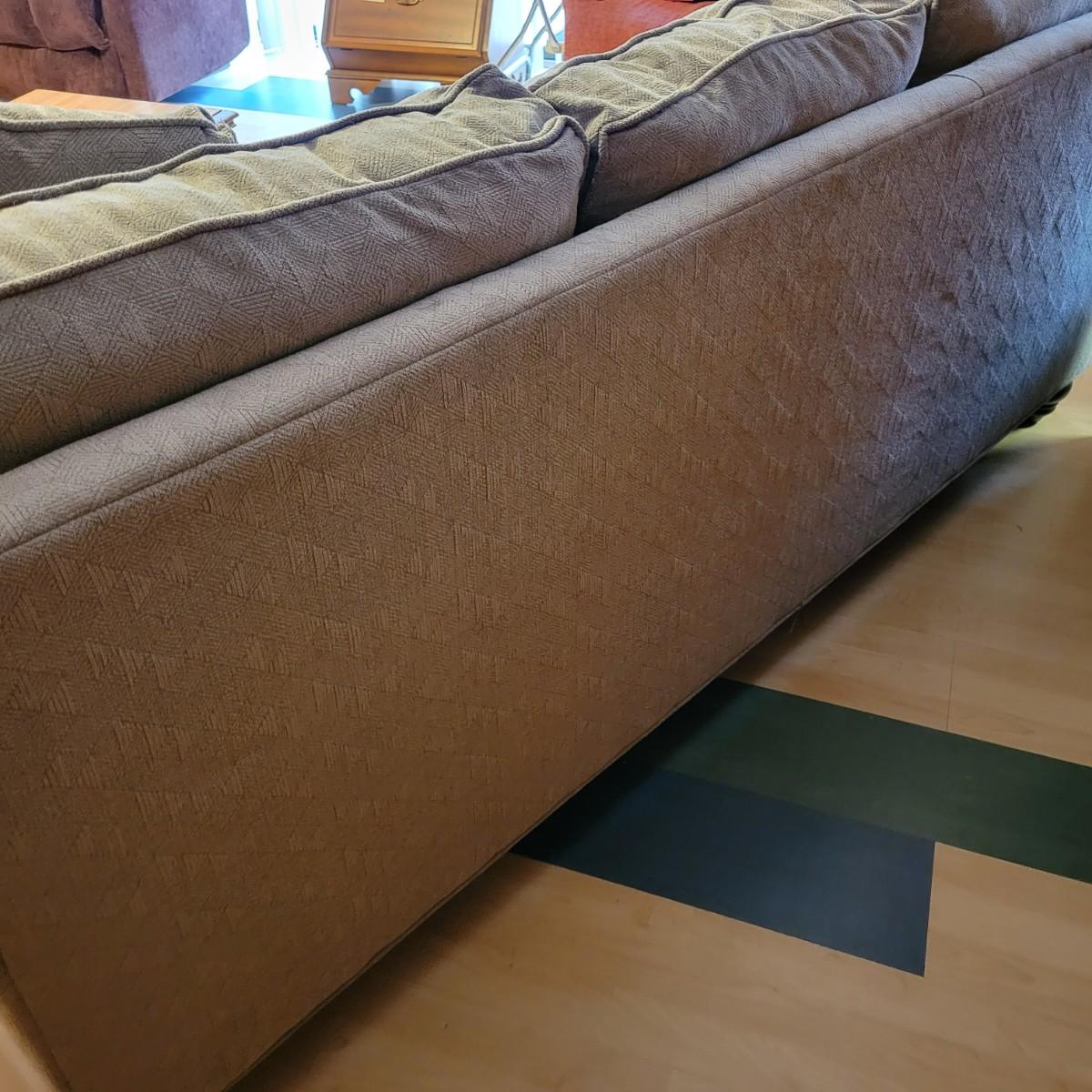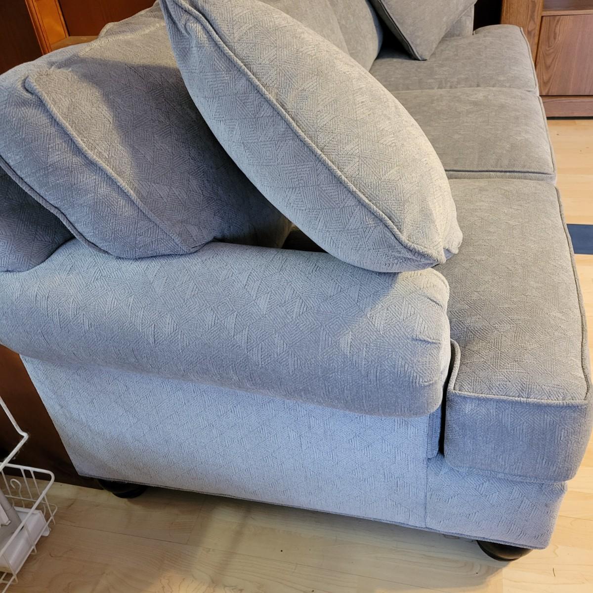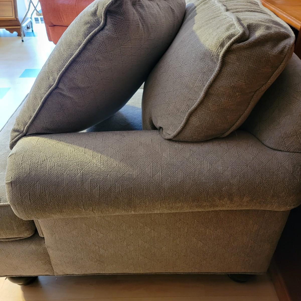 A Craftmaster couch in good condition. This couch was manufactured locally in Taylorsville, NC by Craftmaster and features "Earth Safe" filling. It has a grey textured fabric and two matching pillows. Measures approximately 84" x 36" x 36". No stains or odors were noted. Local pickup only. Winning bidder must bring assistance to help move and load this item due to its weight and/or size.