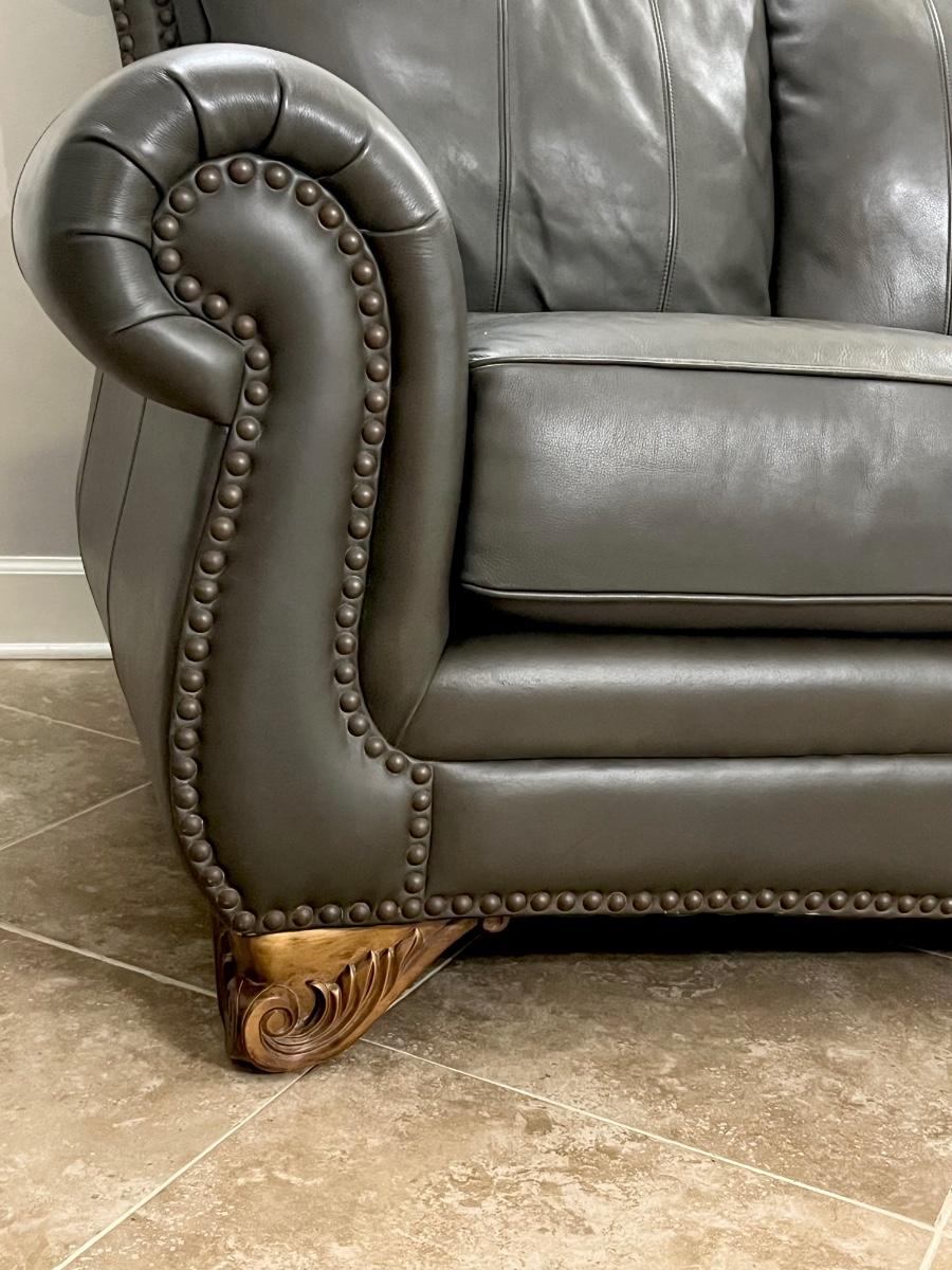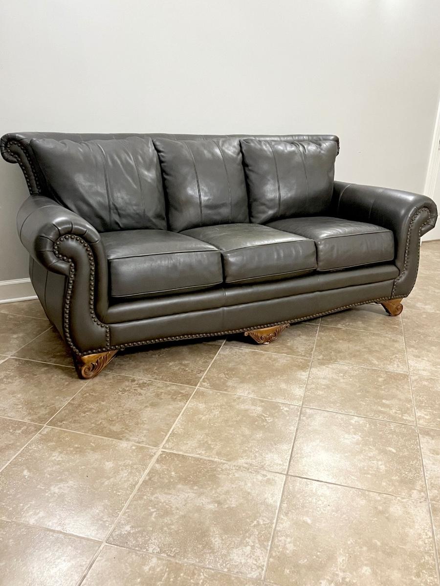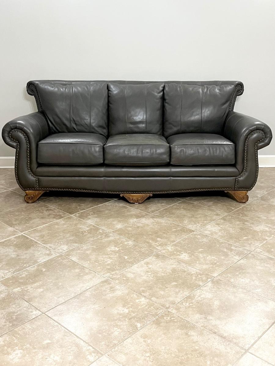 Gray Faux Leather Sofa Nailhead Trim ~*Read Details