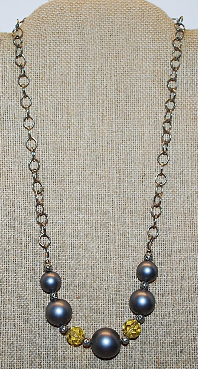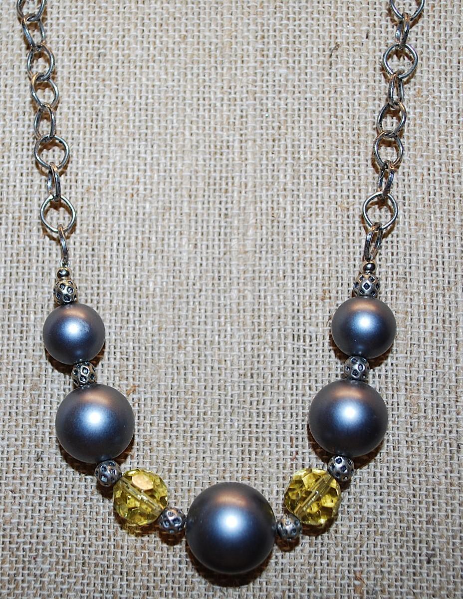 Gray Globes NECKLACE with Amber Spacer Beads and Lobster Clasp 18" L
