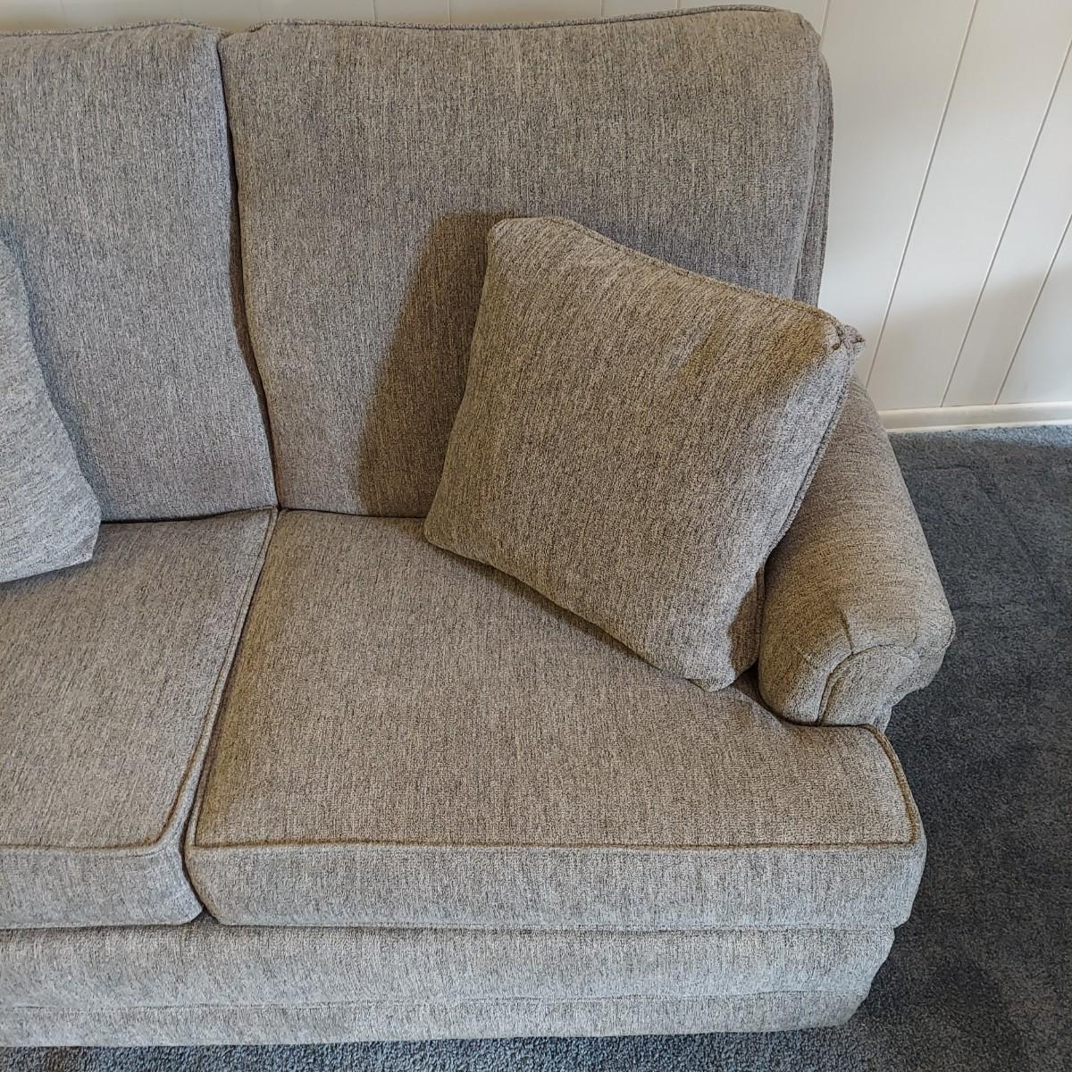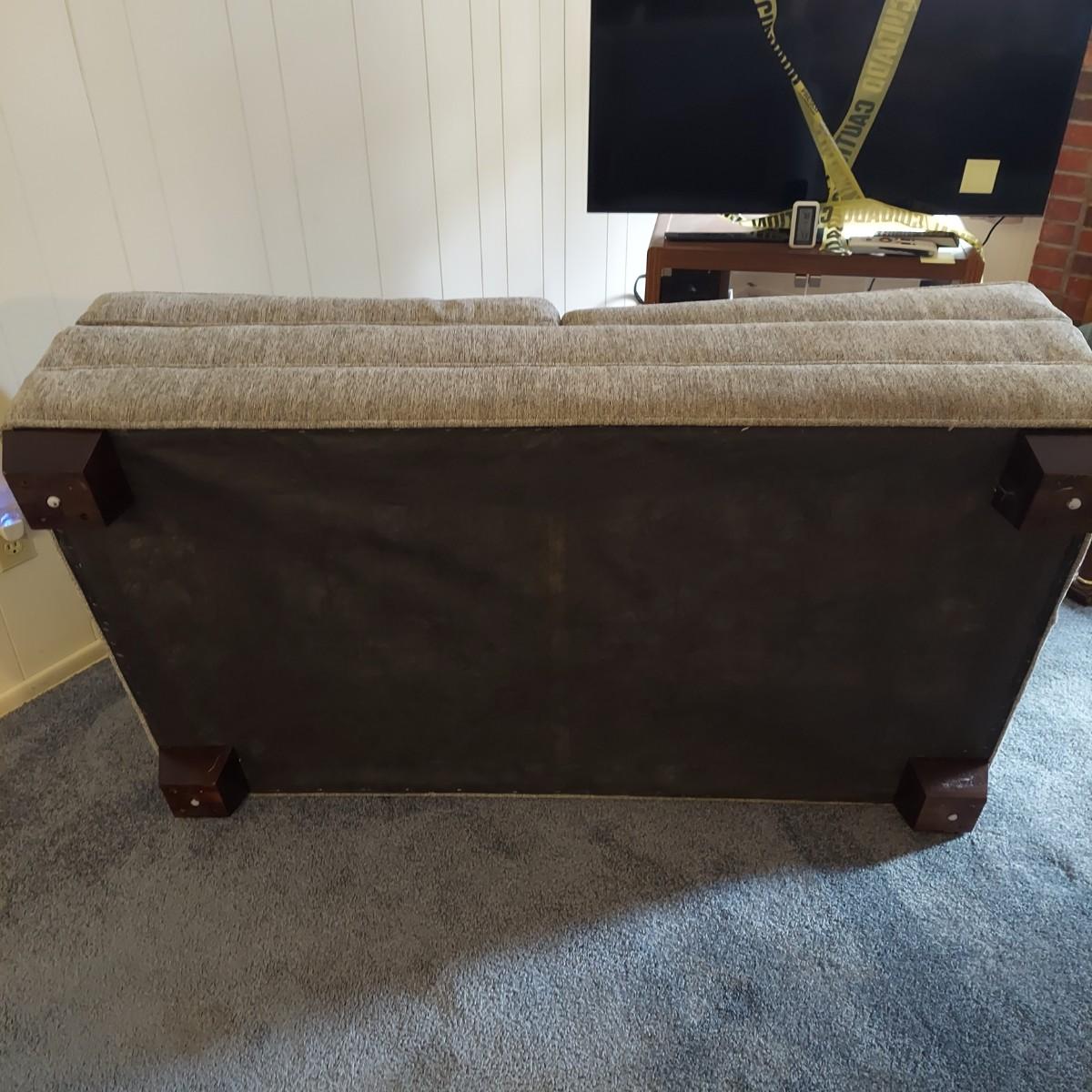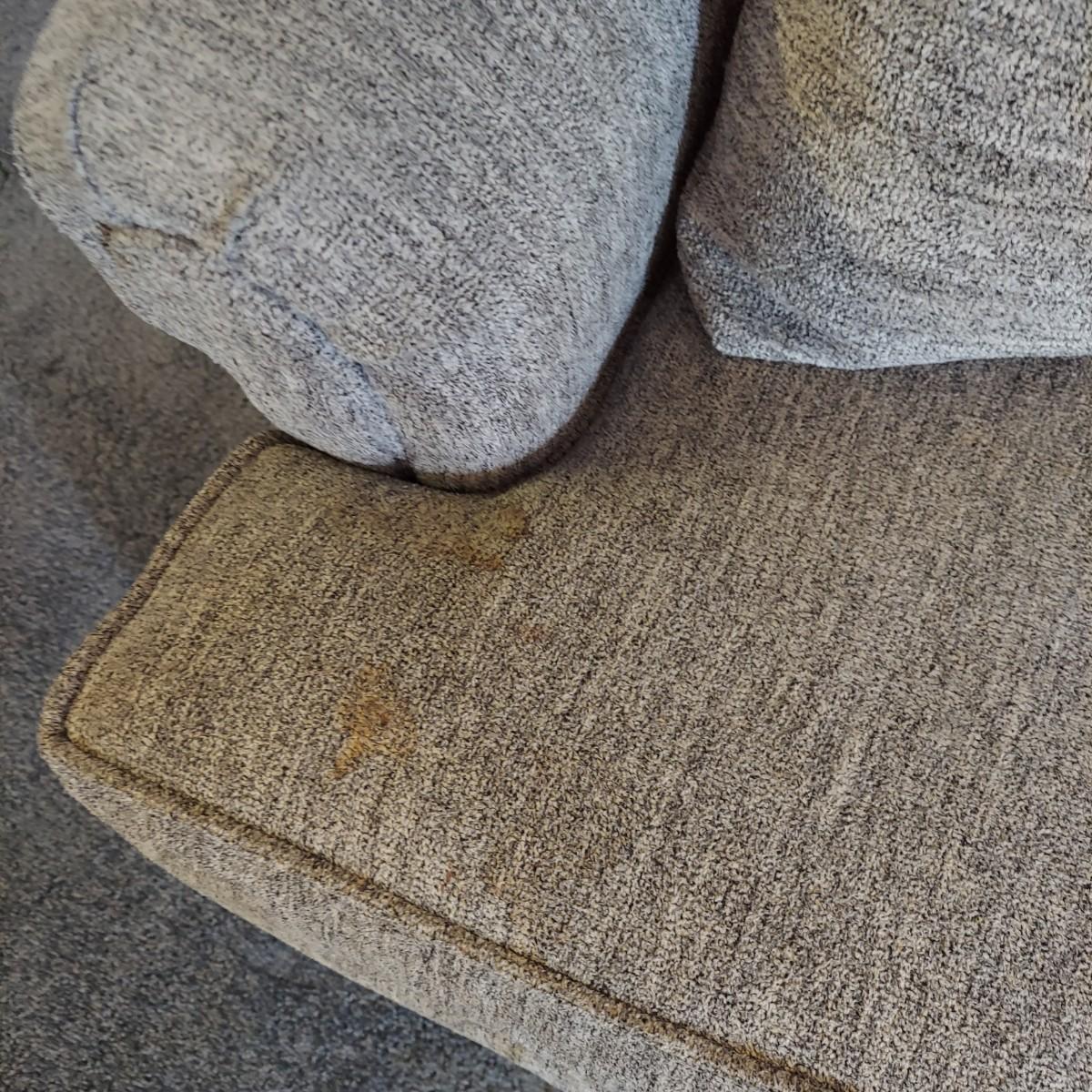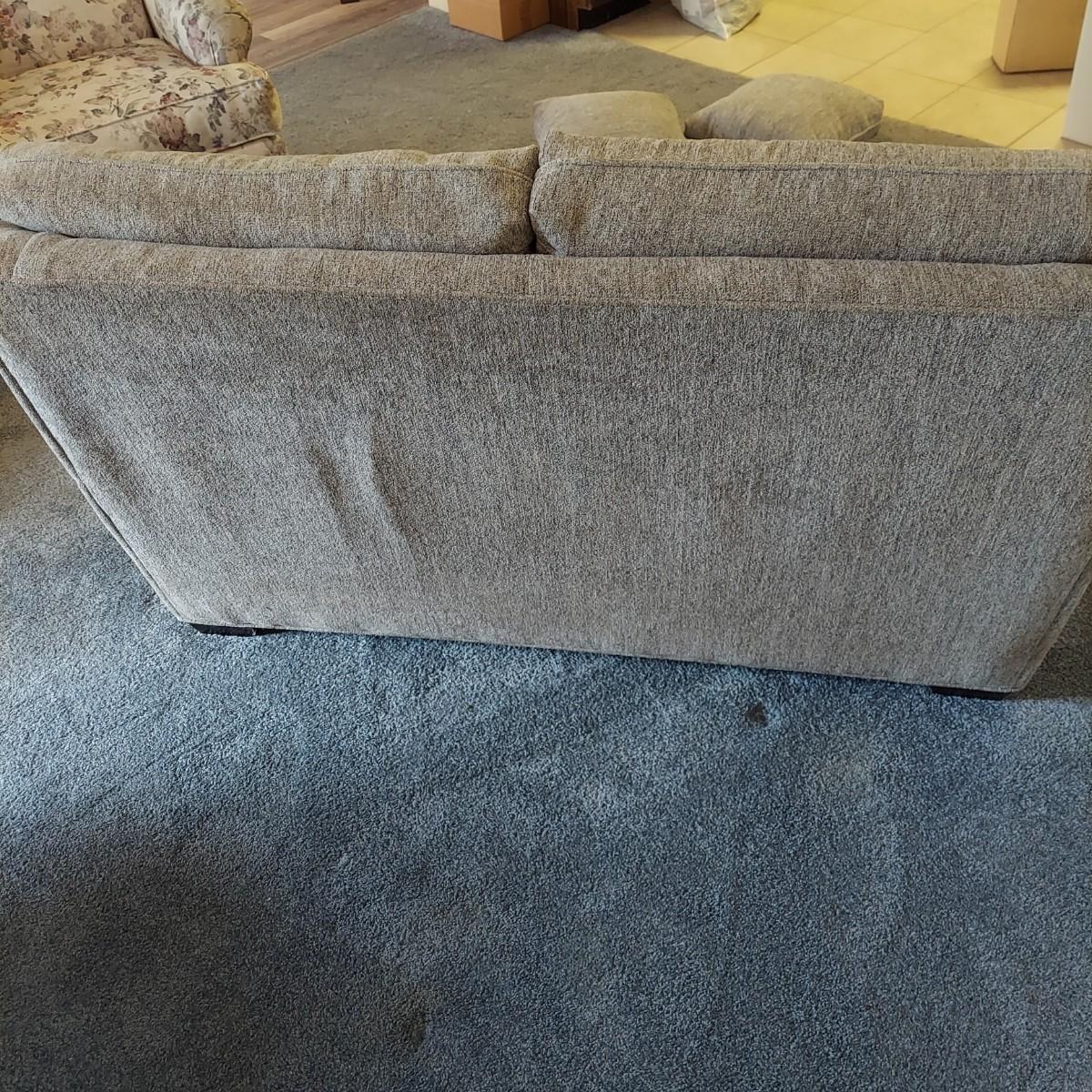 Gray loveseat that measures 54" x 35" x 31"H with a seat height of 16". There are some spots that appear to be on the surface. Couch will need to be cleaned up. Local Pickup Only. Winning bidder must bring assistance to help move and load this item due to its weight and/or size.