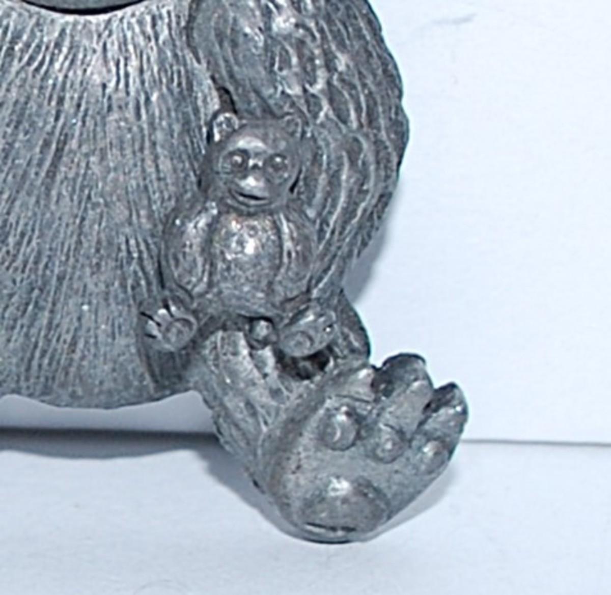 Gray Metal "Mama & Baby Bear" BROOCH (1½" x 1¼") with Detachable Baby on a Silver Tone Setting