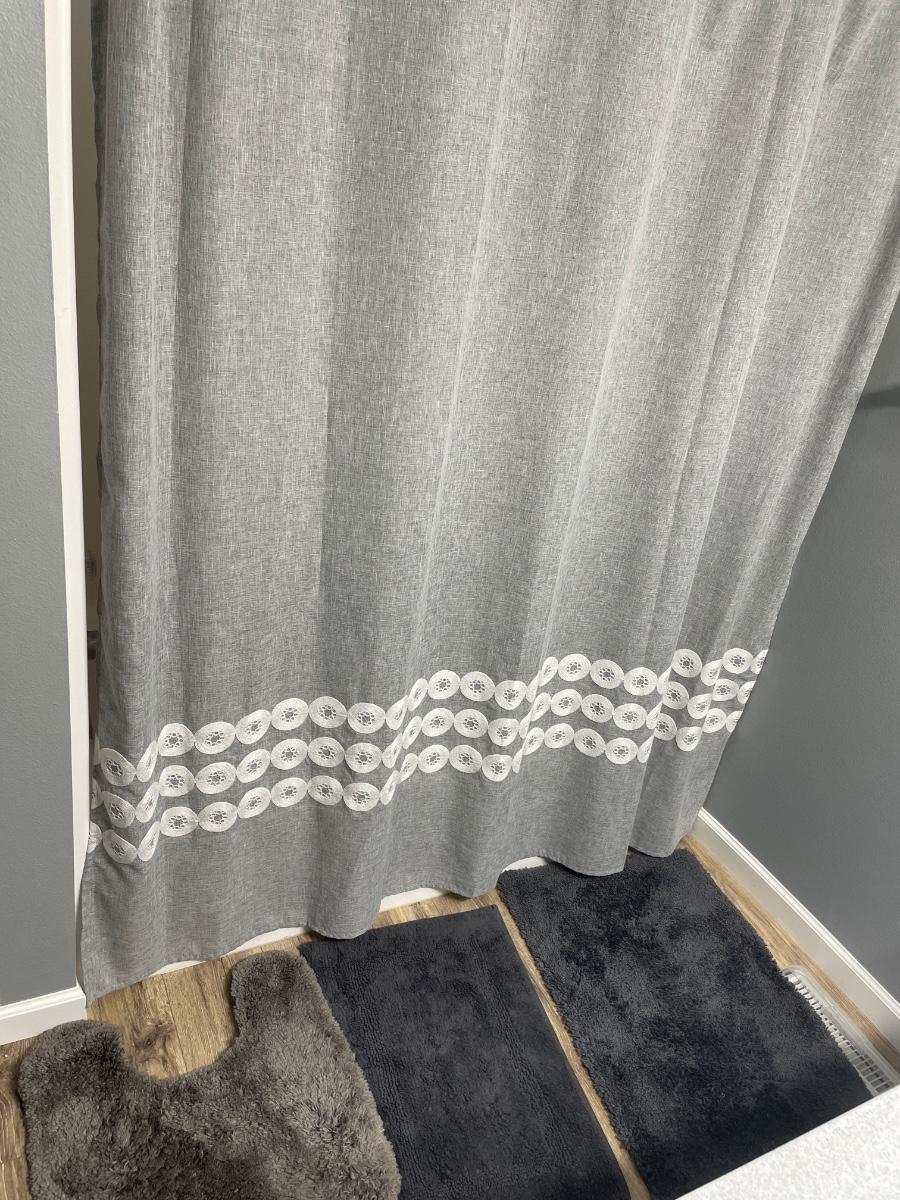 Does not include the shower liner, hooks or rod, curtain only along with three rugs
