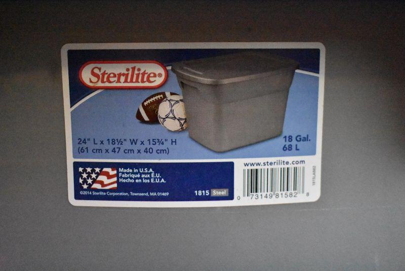 Gray Storage Bin with Lid, by Sterilite, 10 gallon Size