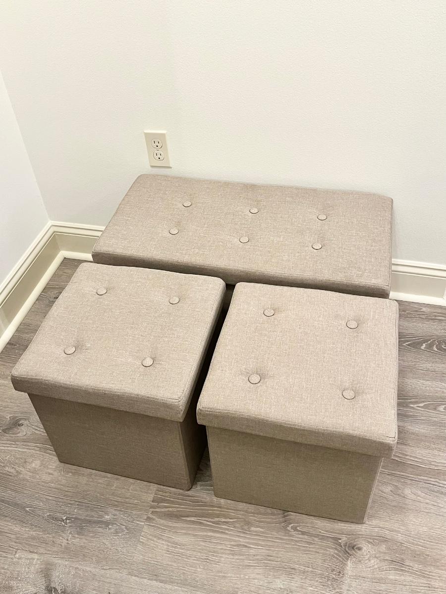 Can be used as Ottoman & Footstools ~ Gently used ~ 2 @ 14.5” H x 15” square & 1 @ 15” H x 30” oblong
