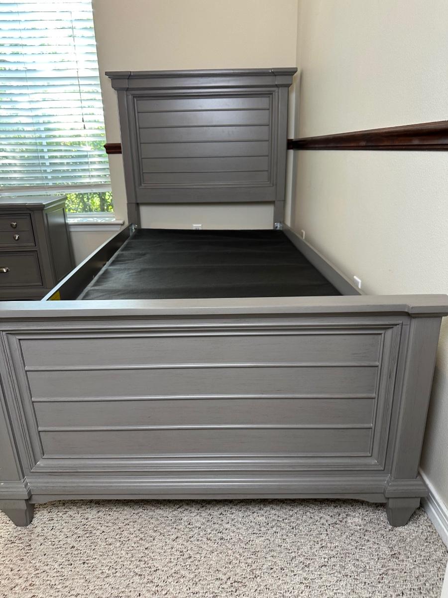 Gray Twin Bed Frame with Paneled Headboard & Footboard