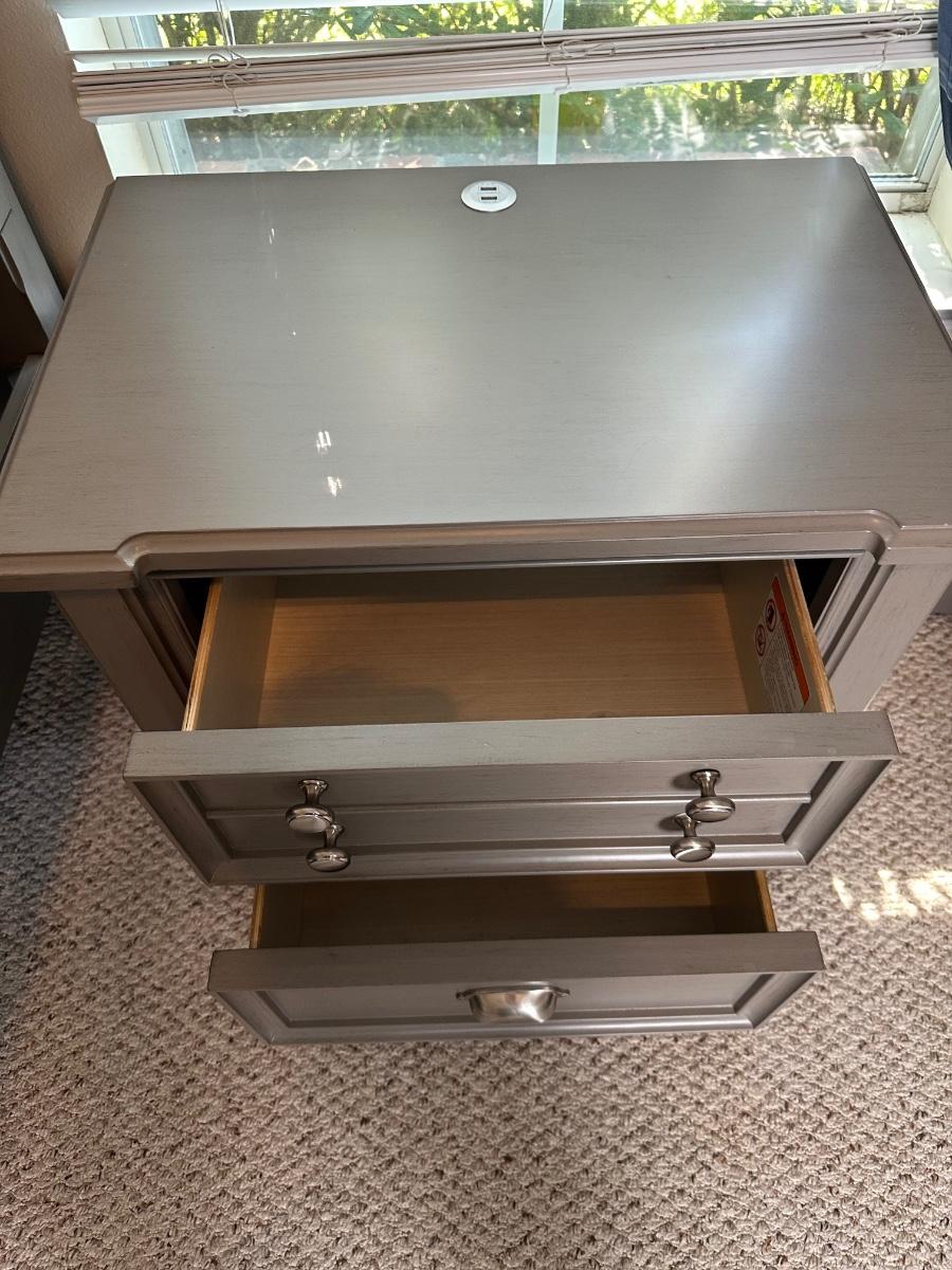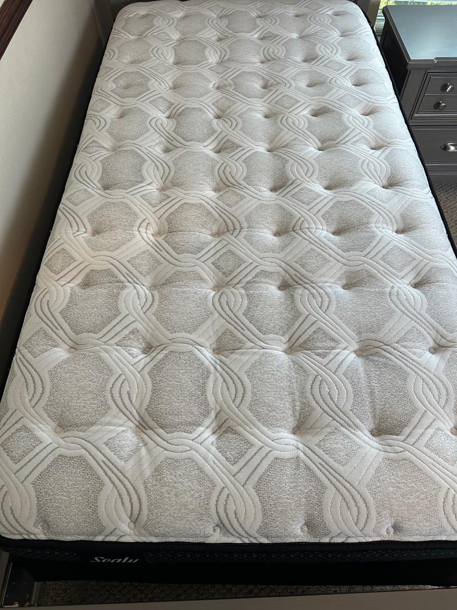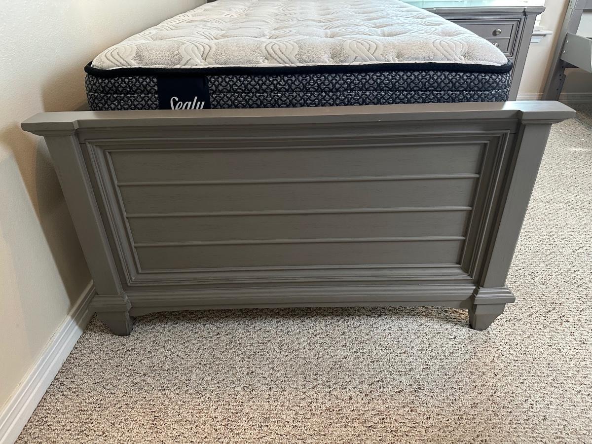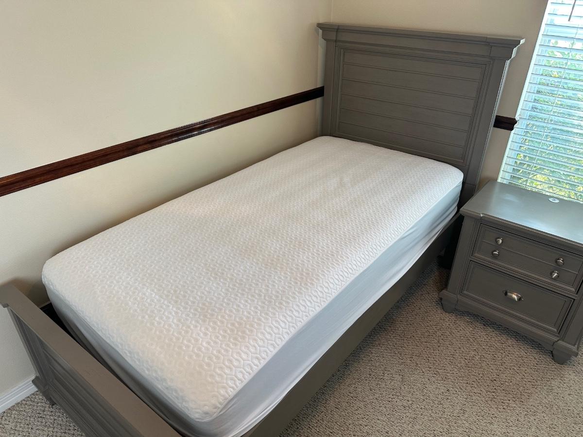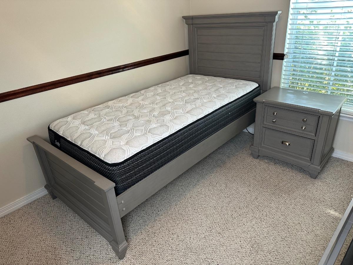 Gray Twin Bed with Nightstand & Sealy Mattress