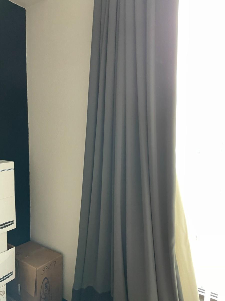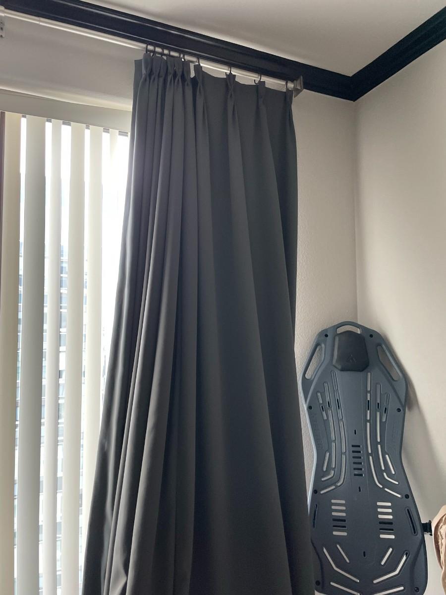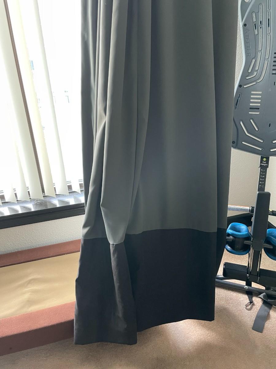 Gray with Black Base Drapes that are lined 110" H x 79.5" W