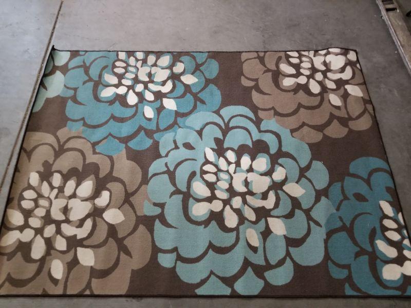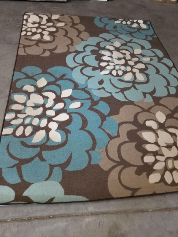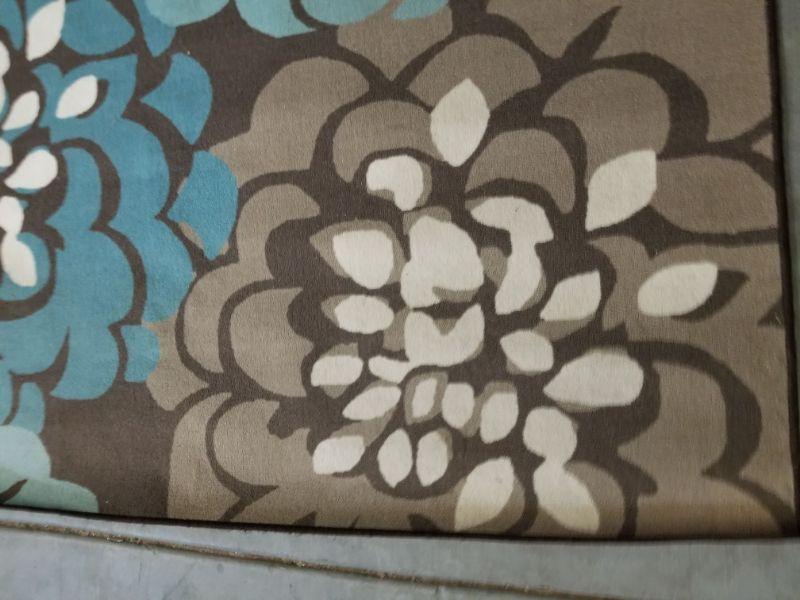 Gray/Blue/Cream Floral Rug, ~79"x108"
