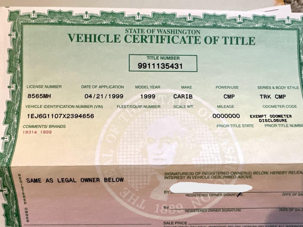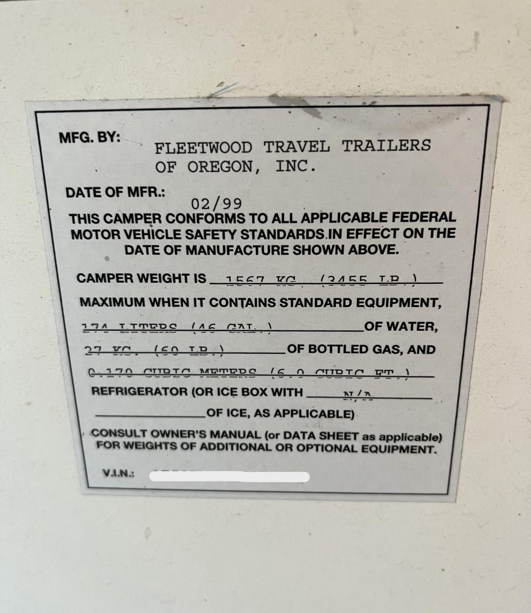 Great 1999 Fleetwood Caribou Camper Truck Trailer! Hook it up to your pickup truck, or buy the 1999 Ford pickup truck in our auction (which the estate owner always used with this camper). Interior includes a bathroom, kitchen, dining area (with fold-down storage area), and sleeping loft. From a Redmond estate, where it was stored inside a covered outbuilding while not in use. No smells inside, no smoking inside. We have all the appropriate paperwork and documentation for the vehicle (image of vehicle title is provided, and buyers are encouraged to search the camper's history). Be prepared and know how to safely transport and hook up this camper should you be the winning bidder.