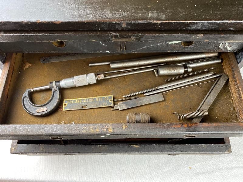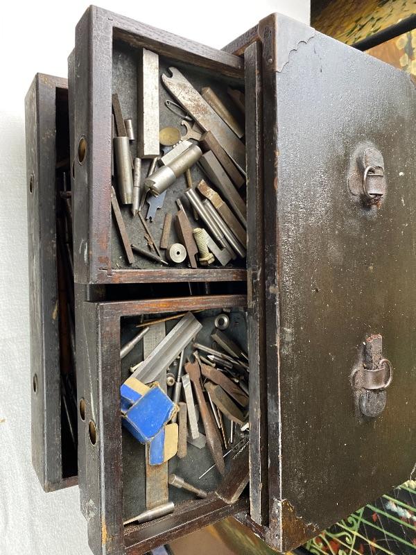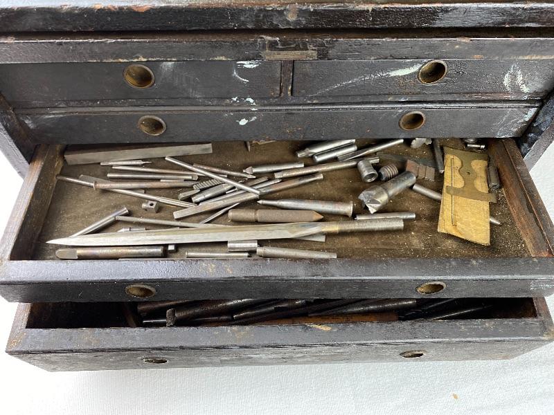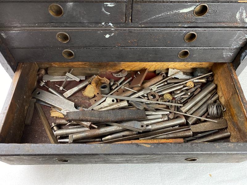 Lot# 3 s Great Antique 5 Drawer Wood Machinist Tool Box w/contents