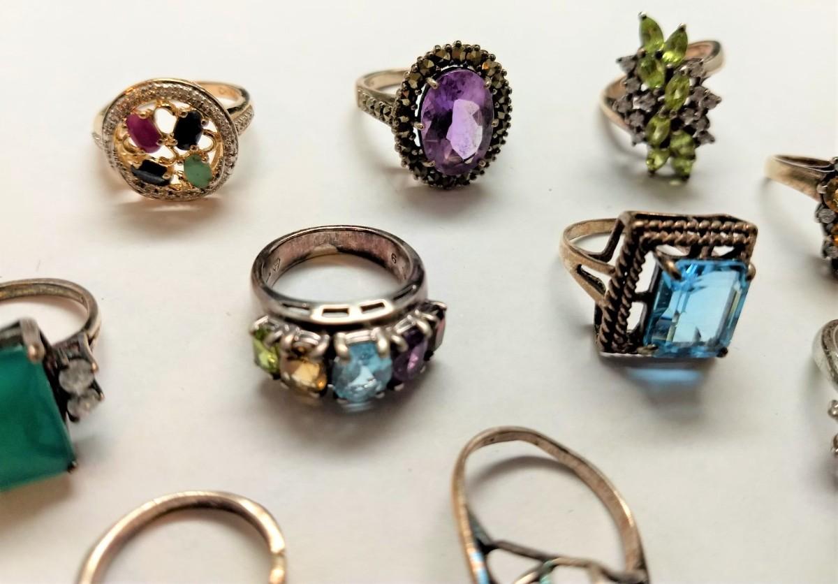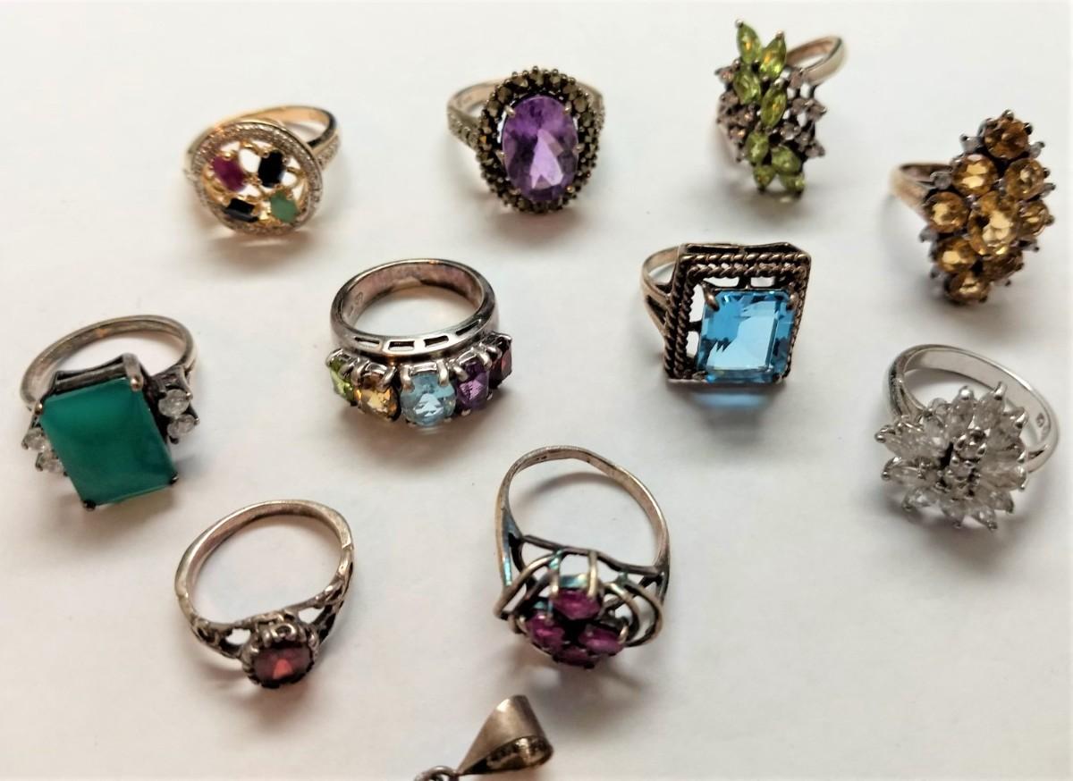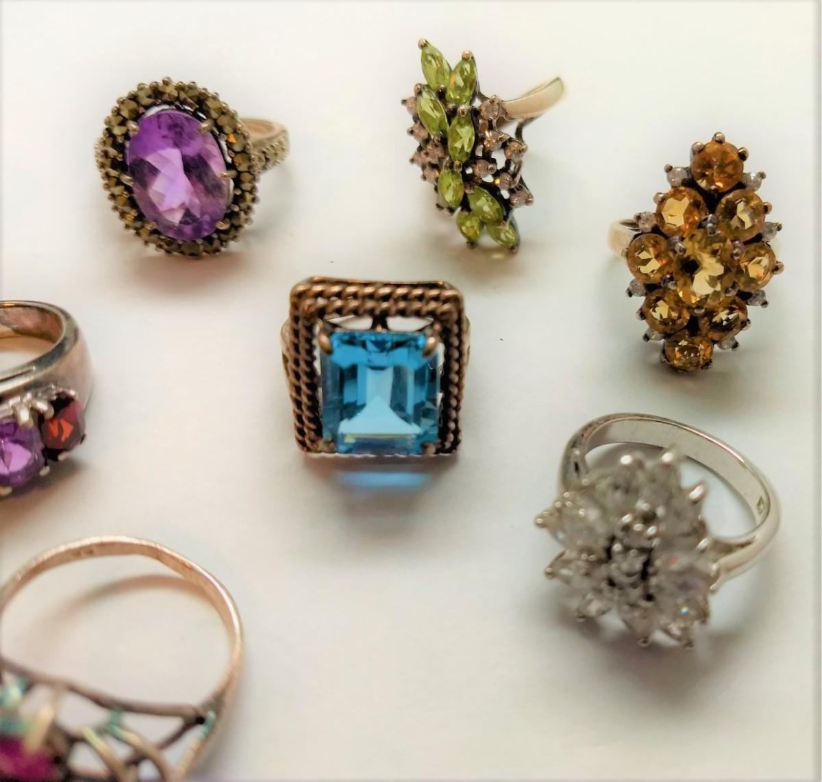 Great Assortment of Vintage Sterling .925 Gemstone Rings Various Sizes