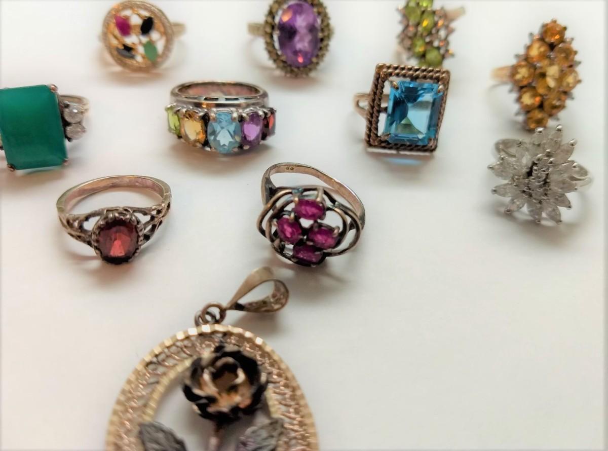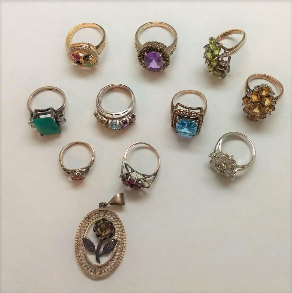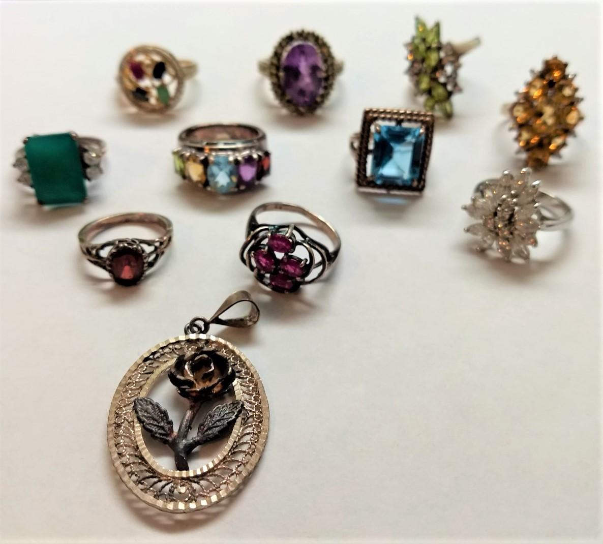 Great Assortment of Vintage Sterling .925 Gemstone Rings Various Sizes