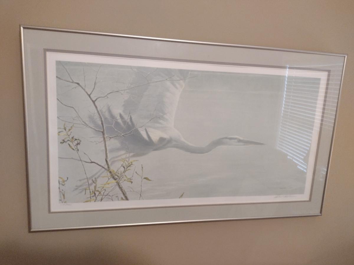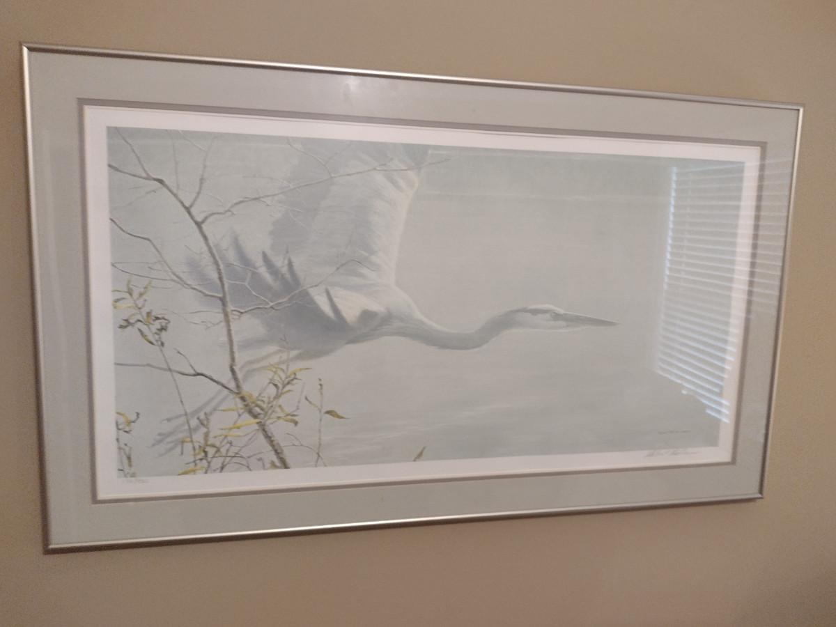 'Great Blue Heron' by Robert Bateman- Double Signed and Numbered- Framed Under Glass- Approx 23 3/4" x 40"