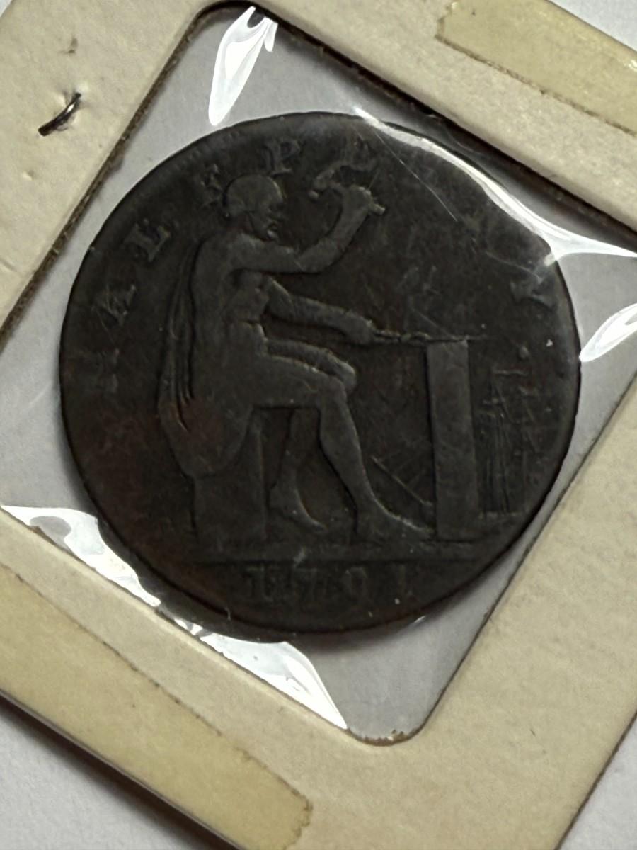 Great Britain 1791 John Wilkinson - Iron Master Copper Half Penny Token Heavily Circulated Condition as Pictured. $5 DOMESTIC SHIPPING.