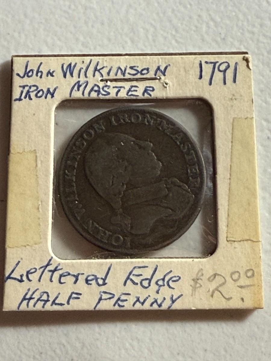 Great Britain 1791 John Wilkinson - Iron Master Copper Half Penny Token Heavily Circulated Condition as Pictured. $5 DOMESTIC SHIPPING.
