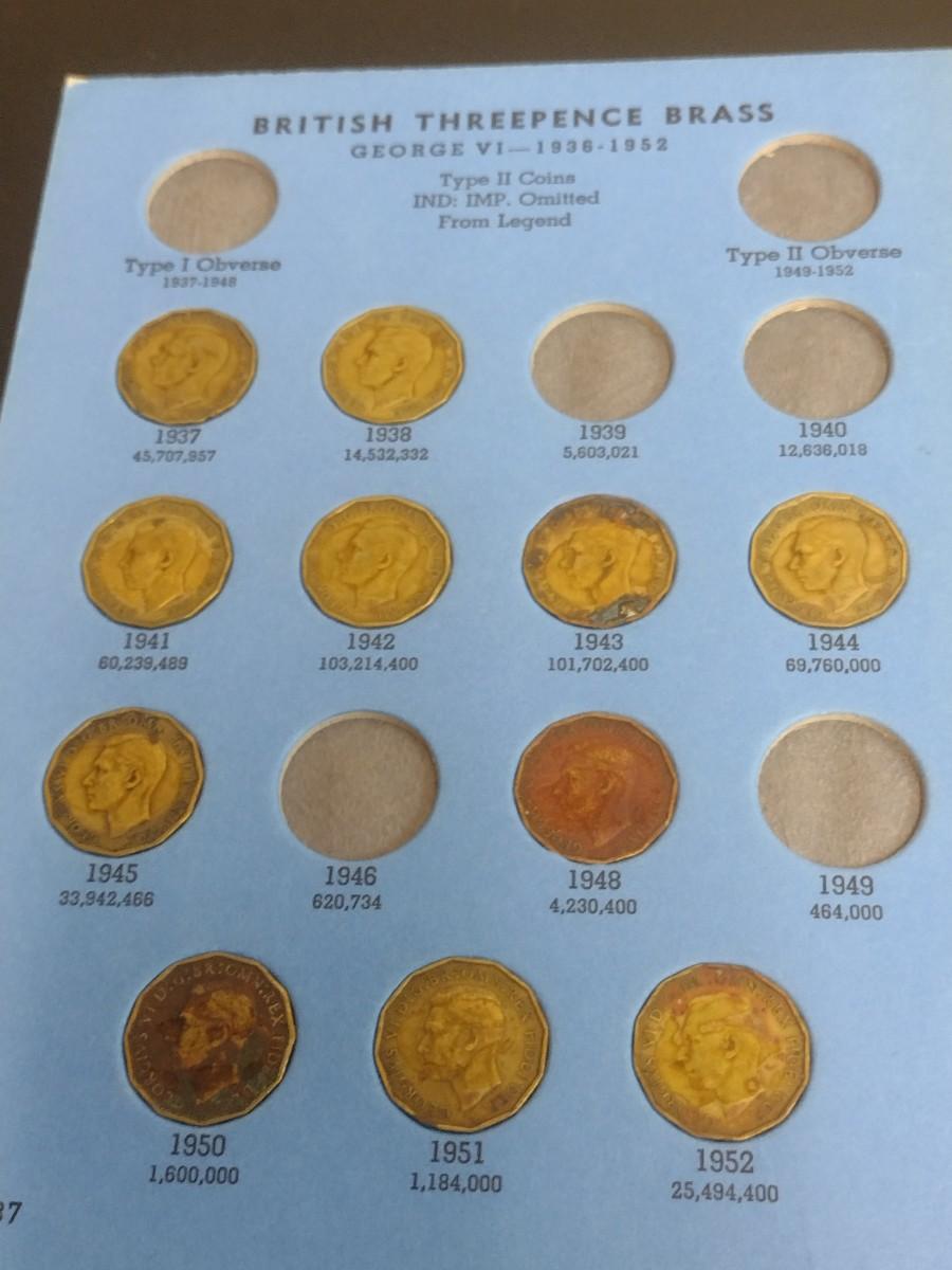 Great Britain Brass Threepence Collection Post-1937 Circulated Condition (#135)