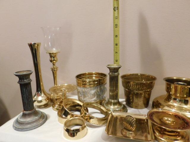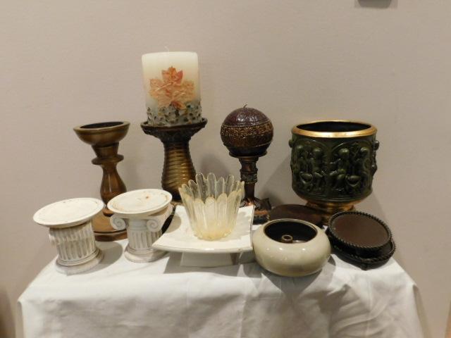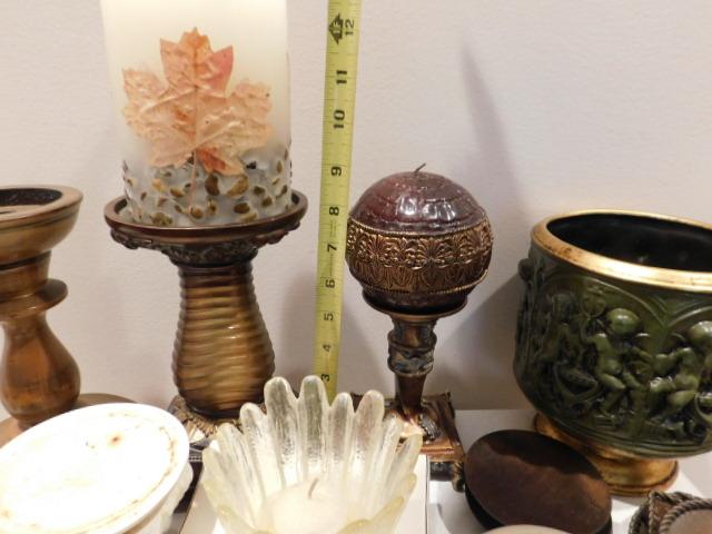 Great Collection of Brass, Composite, and Wood Candle Holders and Tea Lights (See all Pics)